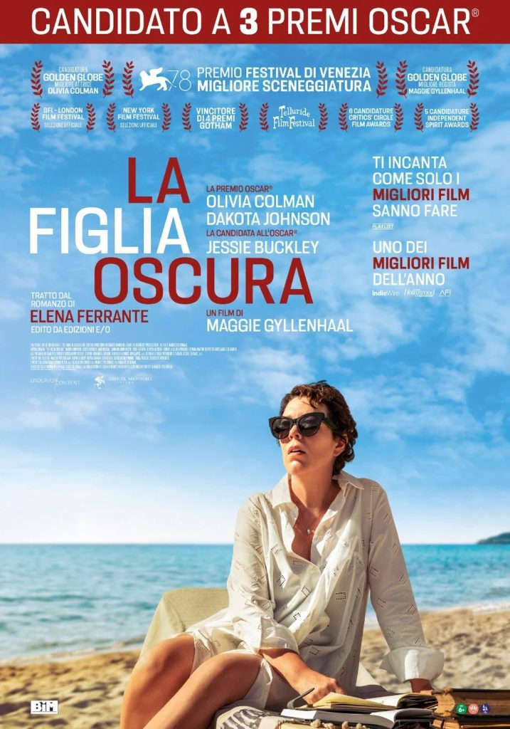 È nelle sale anche “La figlia oscura” (“The Lost Daughter”) tratto da un libro di Elena Ferrante diretto da Maggie Gyllenhaal, per la prima volta dietro la macchina da presa, premiato per la sceneggiatura alla Mostra del Cinema di Venezia. Durante una vacanza al mare in una splendida isola greca da sola, Leda (Olivia Colman) rimane incuriosita e affascinata da una giovane madre (Dakota Johnson) e dalla sua figlioletta mentre le osserva sulla spiaggia. Turbata dal loro irresistibile rapporto, (e dalla loro chiassosa e minacciosa famiglia allargata), Leda è sopraffatta dai suoi stessi ricordi personali dei sentimenti di terrore, confusione e intensità provati nelle prime fasi della maternità. Un gesto impulsivo sconvolge Leda e la proietta nello strano e sinistro mondo della sua stessa mente, dove è costretta ad affrontare le scelte non convenzionali che ha compiuto quando era una giovane madre e le loro conseguenze. La professoressa interpretata da una splendida Olivia Colman si lascia possedere dai ricordi, si rivede come una mamma «snaturata» (brava anche Jesse Buckley) che ha fatto scelte controcorrente, un tema ricorrente nei libri della misteriosa scrittrice di bestseller.