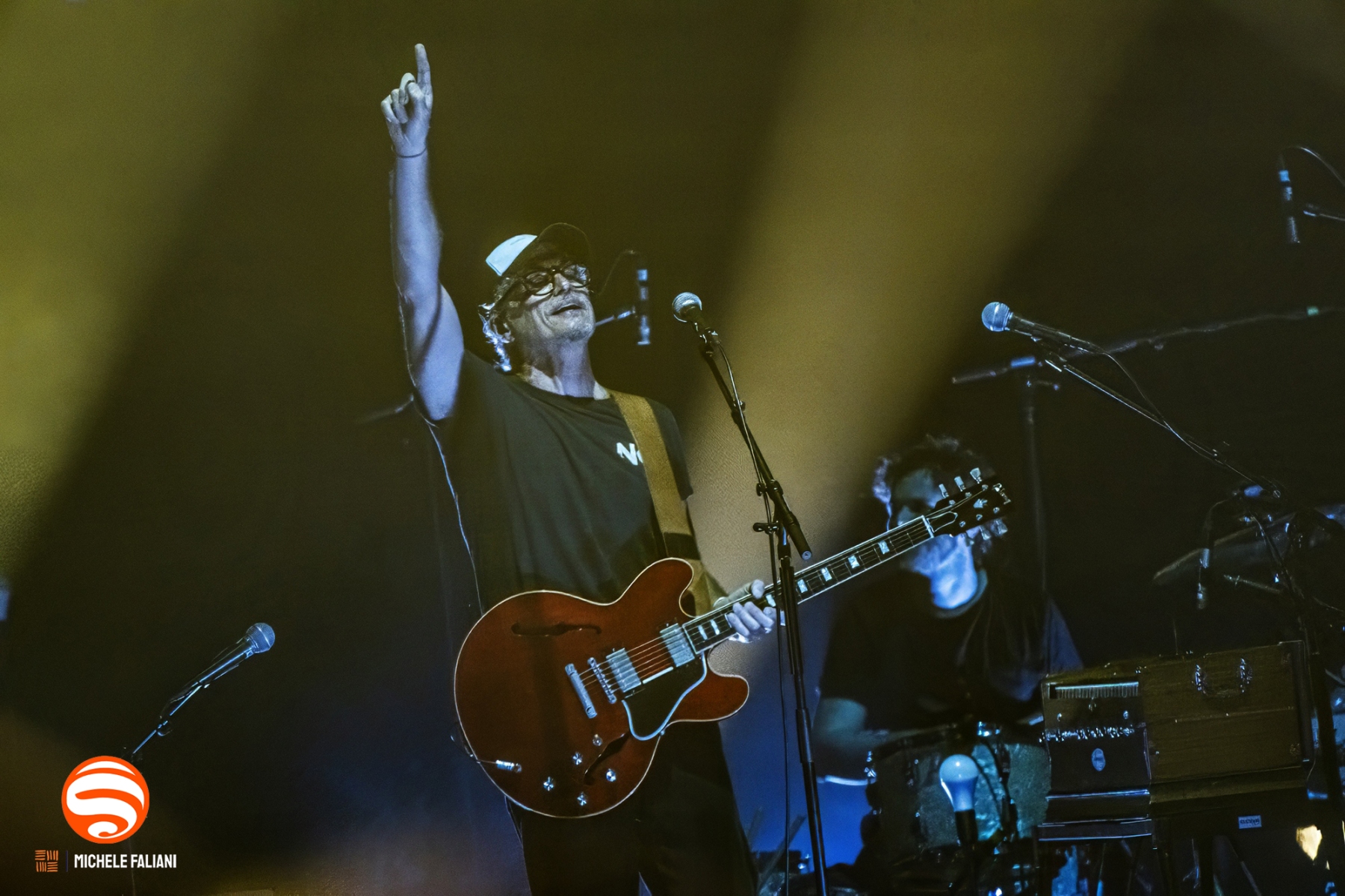 Dalle prime note di “Alba”, il Goldoni si trasforma. L’acustica del teatro —limpida, avvolgente, quasi chirurgica— sembra progettata per accogliere la voce di Fabi come un riverbero naturale dell’anima. Gli arrangiamenti sono essenziali, i suoni puliti, nessuna sbavatura. Anche la luce segue lo stesso principio: discreta, calibrata, un chiaroscuro che abbraccia l’artista mentre lui, spesso, sceglie di restare ai margini del palco. “Mi metto in penombra per riuscire a esprimere la mia intimità, sotto questo cappellino che è un po’ la mia coperta di Linus”, confida, e in quella penombra l’emozione trova la sua forma più sincera.