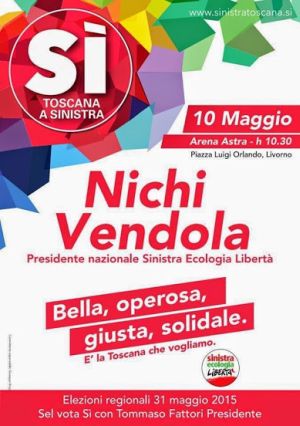 Il Presidente di Sel sarà a Livorno per sostenere le ragioni della lista che vede come candidato Presidente, Tommaso Fattori. “Obiettivo Toscana”, per parlare del rilancio della nostra Regione, al fine di renderla “bella, operosa, giusta e solidale” come tutti noi la vorremo.