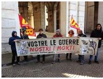 “Siamo contro l’intervento militare in Libia, alle armi nucleari collocate nelle basi Nato che sono in Italia, alle armi vendute all’Arabia Saudita, dice Giovanni Bruno dei Cobas e di Rifondazione Comunista, “diciamo no agli interessi sul controllo petrolifero e le ripercussioni sui lavoratori per i costi della guerra” -prosegue Nicola Sighinolfi del Partito Comunista Lavoratori e Cinzia Della Porta USB Pisa -“oltre allo stato d’emergenza e la tragedia dei flussi dei rifugiati che tentano di fuggire dalla guerra per ritrovarsi ammassati senza speranza sui confini dei muri di rete spinate”.