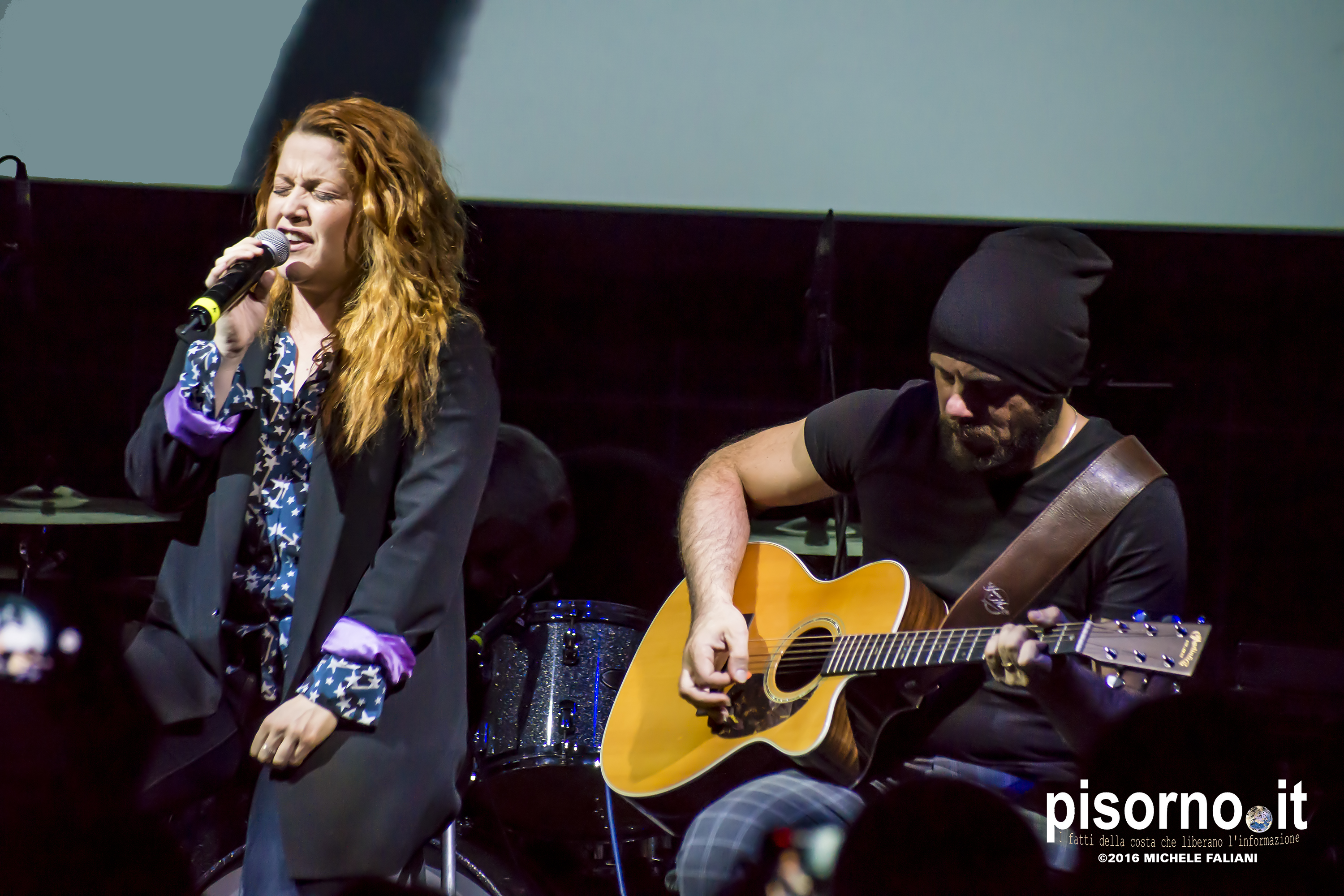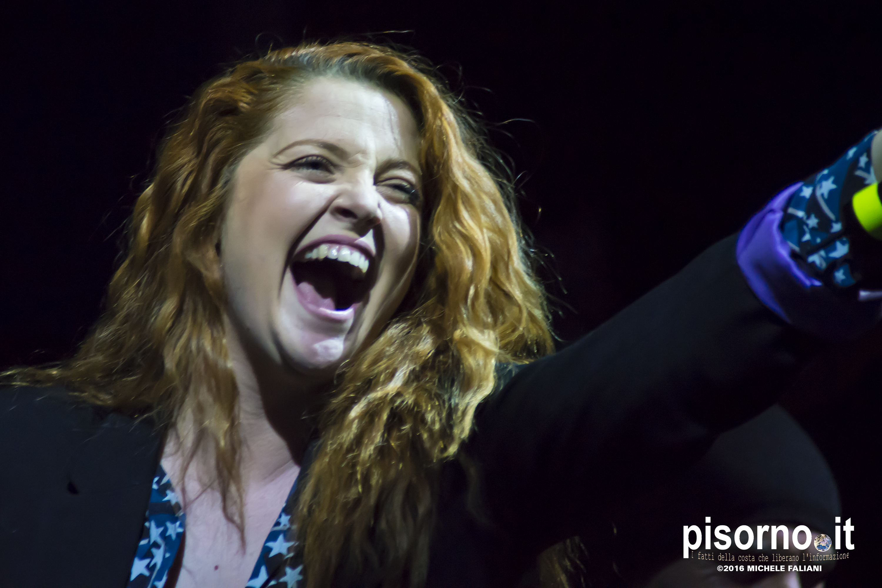 Ammetto che non ho mai comprato un disco di Noemi, né credo che ne comprerò mai; non ho neanche mai visto X Factor quando era una concorrente, e ieri alla Villa del Colle era la prima volta che assistevo ad un suo concerto dal vivo. Ma le canzoni di Noemi, o almeno quelle più famose, le conoscono un po’ tutti, me compreso, e devo dire che ascoltarle una dietro l’altra fa pensare, perché un’artista che ha già così tante canzoni nella storia del pop italiano, nonostante i pochi anni di attività, una certa impressione la fa. E al di là dei gusti personali bisogna ammettere che nel concerto di ieri di buone canzoni se ne sono sentite parecchie, alcune addirittura molto buone (mi riferisco a “Idealista!”, “L’amore si odia”, “Vuoto a perdere” e “Sono solo parole”); ma la cosa che mi ha colpito di più è che la nuova ‘roscia’ della canzone italiana ha una forza espressiva e un’energia che sinceramente non mi aspettavo, oltre naturalmente ad avere una voce della madonna. E poi è accompagnata da una band di fuoriclasse, capitanata dal chitarrista fiorentino Bernardo Baglioni (anche l’arrangiatore dei brani della scaletta) che con le 6 corde ci fa davvero cosa vuole. Molto emozionante anche il momento in cui Noemi, poco prima di eseguire “Amen”, ha dedicato la canzone a Silvia Capasso, la cantante calabrese scomparsa per un aneurisma proprio qualche ora prima, e che aveva fatto parte del suo team in un’edizione di The Voice di qualche anno fa. “Grazie a tutti, ci vediamo con il prossimo disco!” e dopo due ore di musica e parole Noemi e la sua band si sono ritirati nei loro camerini. I fan più incalliti, che ieri erano davvero tanti, sperano che l’attesa non sia troppo lunga.