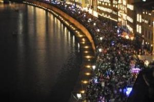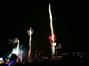 ffetto emozionante davvero senza pari. Lo scintillio dei lumini, visti dall’alto, sono un magnifico spettacolo, completato dai giochi pirotecnici dei fuochi d’artificio che in sintonia con la musica in sottofondo hanno brillato scoppiettanti nel cielo, riflessi sui lungarni.