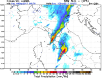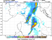 Le schede relative ai modelli di previsioni meteo emanate dal Lamma (l’orario riportato è relativo al meridiano di Greenwich e quindi è indietro di due ore rispetto all’Italia).