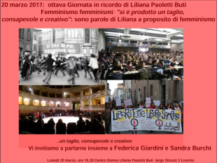 “Ogni anno, dal 2010, il 13 marzo o in un giorno vicino a questa data, dedichiamo una giornata a Liliana Paoletti Buti: ricordarla significa anche riconoscere quanto le devono molte donne. Anche di questo ne parleremo lunedì 20 marzo, ore 16:30 al Centro Donna Liliana Paoletti Buti, largo Strozzi 3 a Livorno”