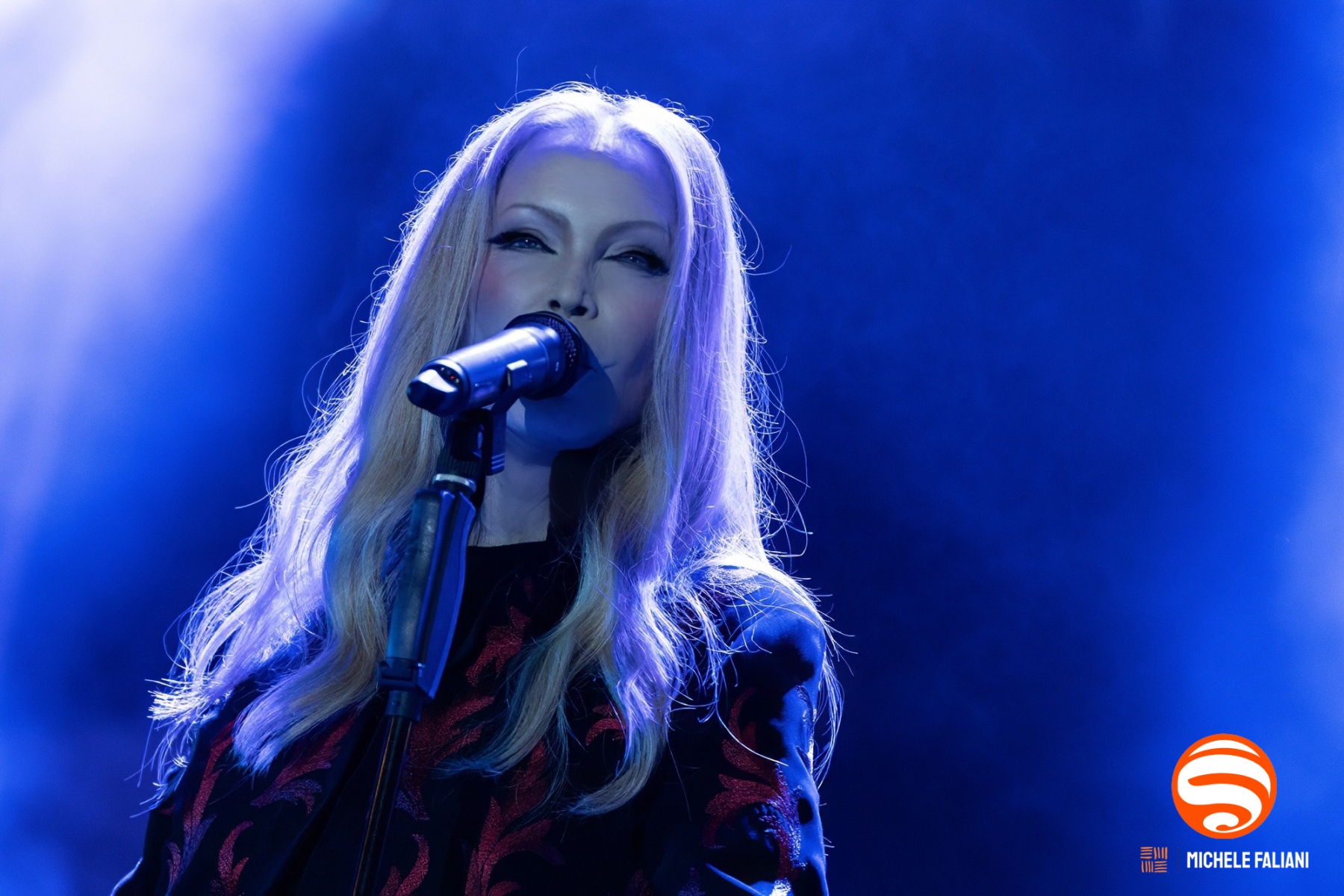 Su questo tappeto musicale si è innestata la voce di Patty Pravo, ancora sorprendentemente piena, riconoscibile e potente. La sua presenza scenica, fatta di gesti misurati e sguardi intensi, ha costruito una relazione intima con il pubblico, che ha restituito calore e partecipazione dall’inizio alla fine. Un look sobrio — completo nero, giacca damascata, pochi accessori — ha sottolineato la sua eleganza senza eccessi.