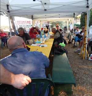 Attorno al tavolino erano seduti rappresentanti delle realtà produttive piombinesi e di altre realtà in crisi (e in lotta) della toscana, da Pisa a Livorno, a Firenze, a Massa. Anche altre sigle sindacali di sindacati di base, come Slai-Cobas, Cub (presente con il Segretario Nazionale Antonio Ferrari), SGB, erano con noi. Era la prima volta che noi contattavamo queste realtà ed è stata anche la prima volta che molte realtà diverse si incontravano per costruire un percorso comune. C’è stato quindi un proficuo scambio di informazioni e di esperienze, da cui sono emersi punti comuni e anche comportamenti differenti, differenti sensibilità, differenti valutazioni della realtà del momento.