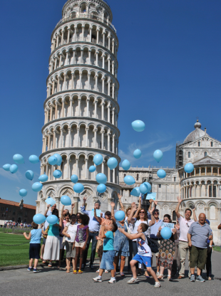 Pisa ha Charlie Gard, nel cuore, il bambino di 10 mesi ricoverato al Great Ormond Street Hospital di Londra. Palloncini blu sotto la Torre