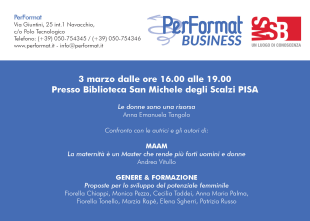 Performat Business e la biblioteca San Michele degli Scalzi di Pisa presentano il libro “Genere & Formazione” venerdì 3marzo 2017 ore 16.00. Anna Emanuela Tangolo ne parla con le autrici
