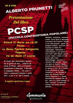 alberto prunettiDopo lo straordinario “Amianto” Alberto Prunetti torna a Livorno per presentarci il suo ultimo lavoro. “PCSP, Piccola controstoria popolare” (Edizioni Alegre) è un libro che ci proietta nella zona della Maremma, terra di “innati” sovversivi, in una cornice storica che prende quasi tutta la prima metà del secolo scorso, dagli anni del primo conflitto mondiale all’immediato secondo dopoguerra.