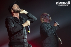 Più di 130 milioni di dischi venduti e 80 anni di carriera in due: sono i numeri impressionati che mettono insieme Raf e Umberto Tozzi, protagonisti di un tour che (esattamente trent’anni dopo la loro partecipazione all’Eurofestival con “Gente di mare”) sta attraversano tutta Italia e che l’altra sera al Nelson Mandela Forum di Firenze ha registrato un più che prevedibile sold-out. Davanti a una platea che ha resistito venti minuti prima di alzarsi in piedi a ballare (e ricca anche di vip come Leonardo Pieraccioni, Marco Masini e Paolo Conticini), Raf e Tozzi hanno proposto TUTTI i loro successi più grandi, ovviamente vestiti di nuovi arrangiamenti, sempre in duo, escluse due brevi parentesi nelle quali i due cantautori si sono ritagliati un piccolo spazio da soli. Per due ore e mezzo è stata una festa che ha coinvolto le migliaia di spettatori, in piedi a ballare e a cantare alcune delle pagine più popolari della storia del pop italiano: da “Gente di mare” a “Si può dare di più”, da “Tu” a “Cosa resterà degli anni ’80”, fino al gran finale con “Self control” e “Gloria”. Non un’operazione nostalgia, ma un progetto che ha messo al centro la musica e la memoria collettiva. E a giudicare dall’entusiasmo del pubblico un progetto che è risultato vincente.