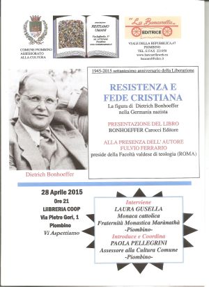 Presentazione del libro su Bonhoeffer il 28aprile alle ore 21.00 presso la libreria Coop via P. Gori, Piombino