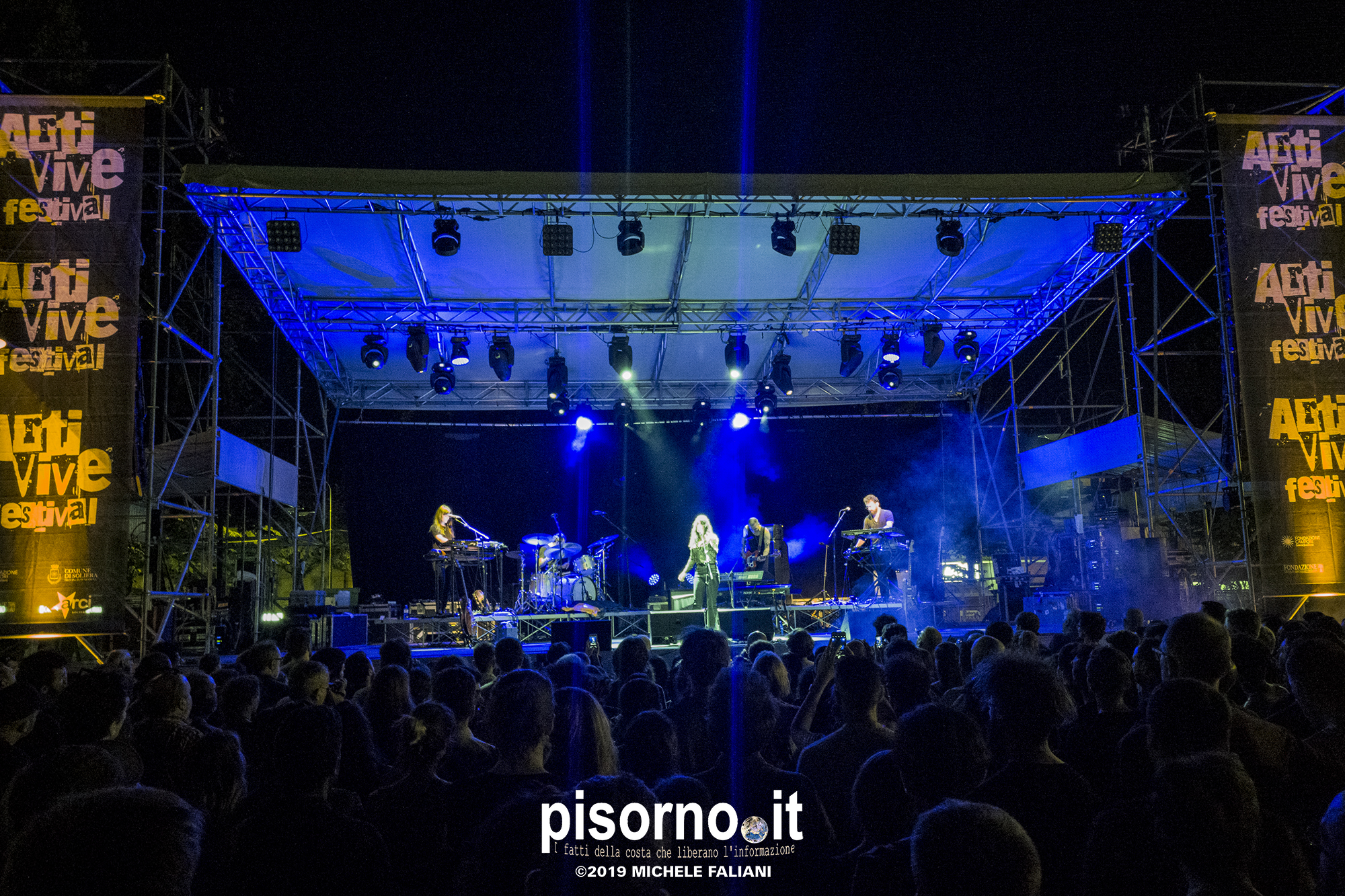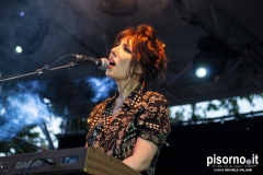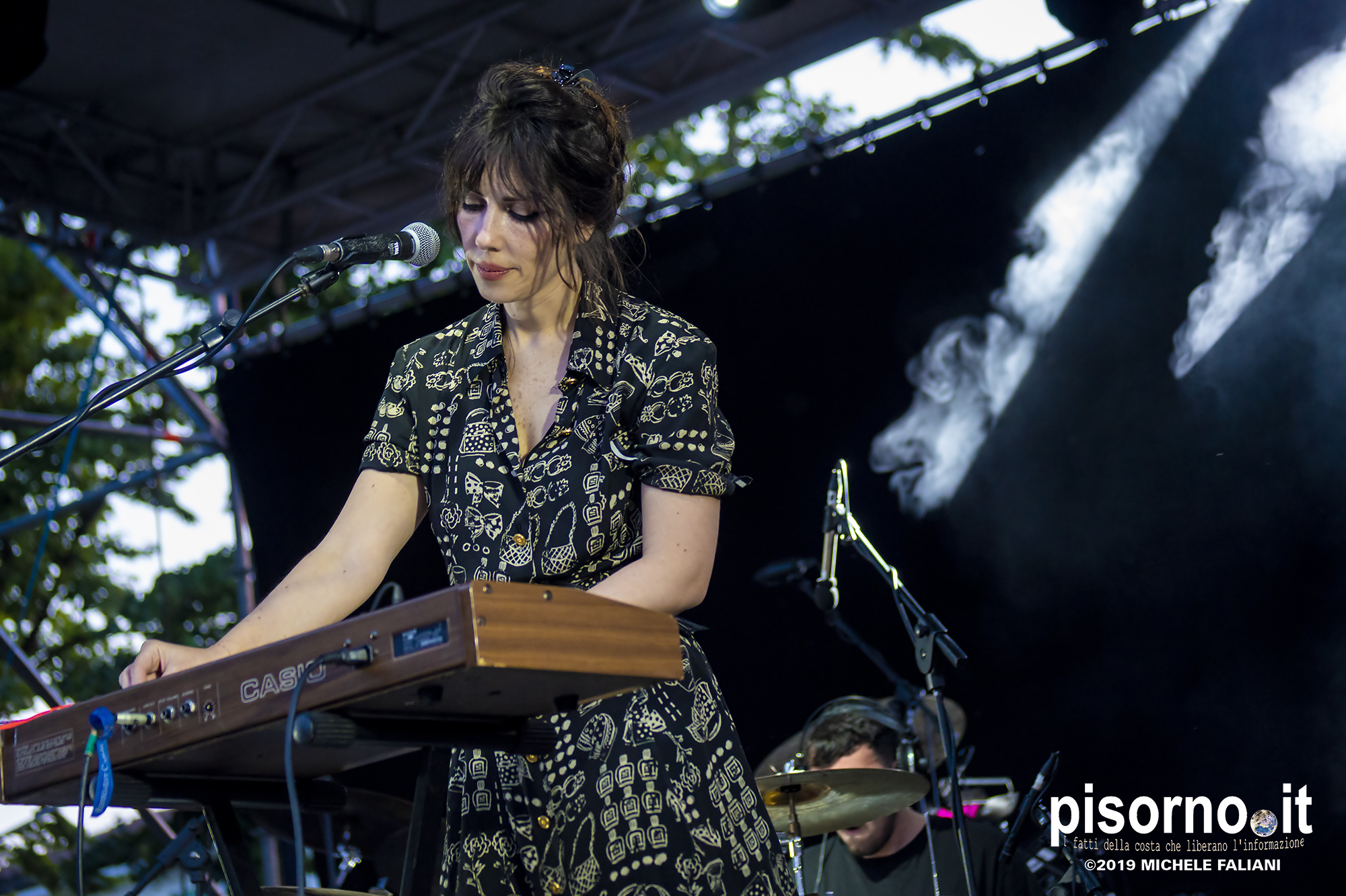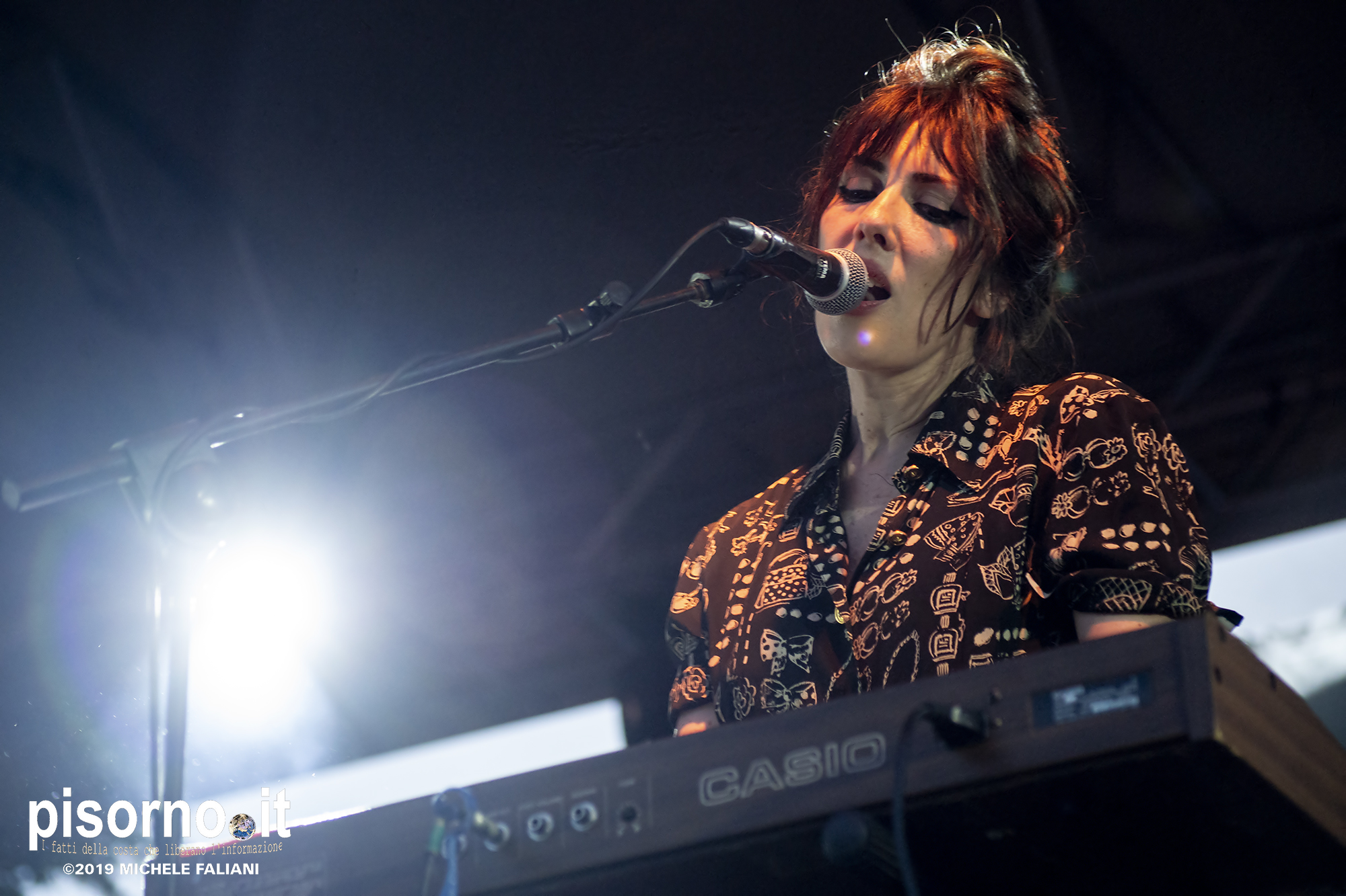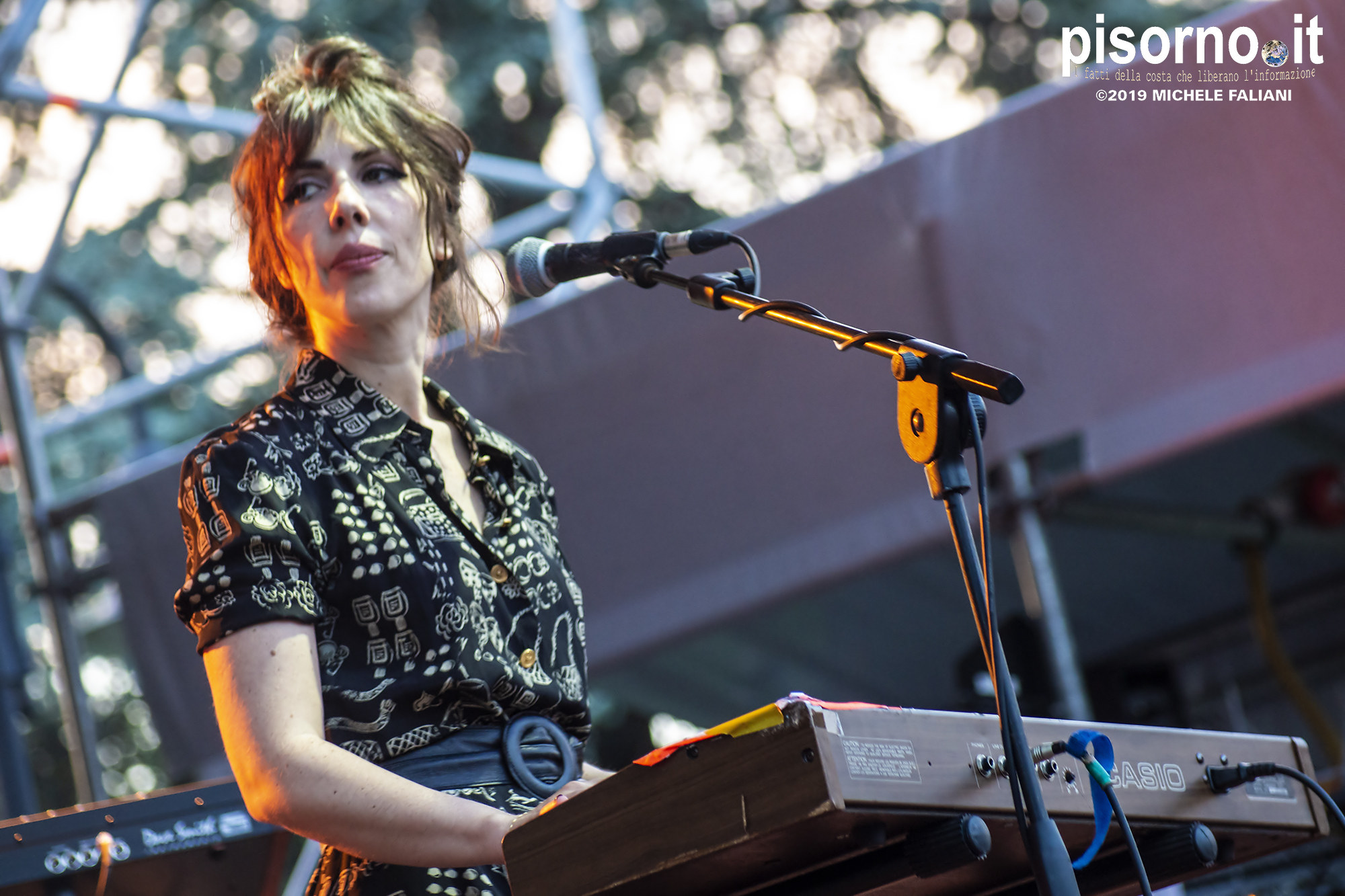 Anche il meteo è stato benevolo in questa domenica di luglio, facendo soffiare un vento freschissimo su tutta la bassa modenese che ha reso ancora più godibile la serata conclusiva dell’edizione 2019 di Arti Vive, bellissimo festival che si tiene nel piccolo paese di Soliera, appena fuori Modena. Ma visto il programma di questo closing day la temperatura sarebbe davvero l’ultimo dei problemi: apre la serata Any Other (pseudonimo di Adele Nigro, veronese), che al contrario del suo opening act a Ferrara per Soap&Skin, dove l’avevo trovata piuttosto noiosa e poco incisiva), in versione full band dimostra grinta, enormi doto vocali e soprattutto buone canzoni. Un set che conferma le ottime critiche che sta ricevendo dalla stampa e che sottolinea quanto mi fossi sbagliato sul suo conto. A seguire Malihini, nuovo progetto di Thony (vi ricordate la protagonista di “Tutti i santi i giorni” di Virzì?) in coppia con Giampaolo Speziale. Un vero e proprio cambio di rotta per Thony, che abbandona il suo cantautorato obliquo e la sua chitarra acustica per passare al suono electrowave del suo nuovo progetto, sicuramente una delle cose più interessanti di questa prima metà di 2019. Infine, verso le 22:30, sale sul palco Sharon Van Etten, accompagnata dai suoi 4 musicisti. Non date retta a chi dice che la bella Sharon abbia già detto tutto quello che aveva da dire con “Tramp” ed “Are we there?”, anche il nuovo “Remind me tomorrow” è un signor disco che dal vivo acquista ancora più energia ed immediatezza. Le atmosfere à la National di “Comeback kid”, per esempio, o la bellissima “Seventeen”, sono state fra i picchi di un concerto tirato ed essenziale, nel quale (fra una cover di “Black boys on mopeds” di Sinead O’Connor e una monumentale “Stay” messa a fine concerto) la Van Etten ha tenuto per mano migliaia di appassionati per oltre un’ora e mezzo. Il futuro è tutto dalla sua parte, datele fiducia e non ve ne pentirete.
