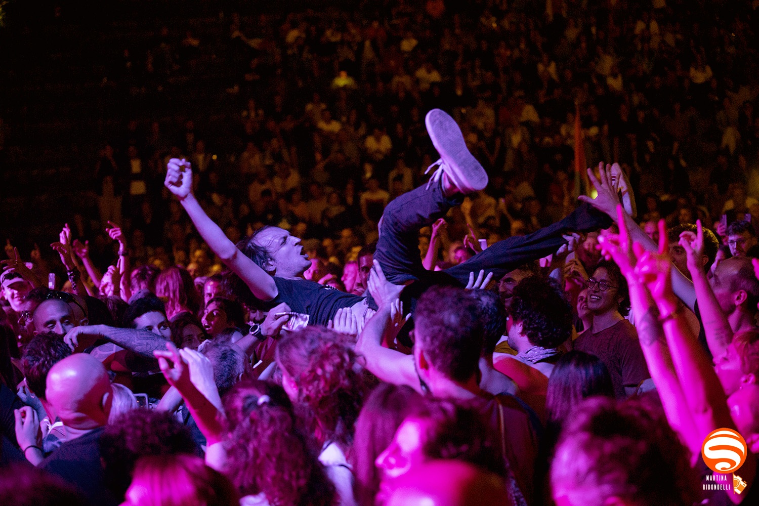 Il merchandising solidale è andato esaurito in poche ore, segno di una generosità palpabile. Perché non era solo un concerto: era un atto collettivo, un gesto di speranza. La pace non era un drappo da sventolare, ma qualcosa che si sentiva nel cuore, e che per una sera ci ha uniti tutti sotto lo stesso cielo.