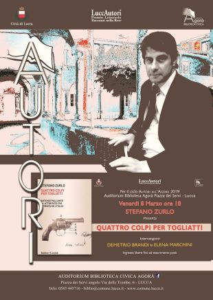 Venerdi’ 8 marzo alle 18 alla Biblioteca Civica Agorà, piazza dei Servi – Lucca, per il ciclo di incontri autori all’Agora’ a cura di LuccAutori e Biblioteca Agorà, il giornalista *Stefano Zurlo presenta “Quattro colpi per Togliatti”. Intervengono Demetrio Brandi e Elena Marchini.