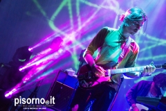Vengono dall’Australia, ma non hanno niente in comune né con i songwriters da ‘desert sound’ come Mick Harvey e Hugo Race, né con il ben più famoso Nick Cave, né tantomeno con le band garage rock che hanno invaso il music business a metà degli anni 80 (Hoodoo Gurus, Died Pretty, New Christs): eppure i Tame Impala finiscono per mettere d’accordo un po’ tutti, sia gli appassionati dell’indie rock che quelli dell’elettronica. Il loro mix fra dream pop, chitarre distorte, groove psichedelici, sintetizzatori e ritmi dance li porta ad essere il gruppo più trasversale dell’attuale panorama musicale, e (cosa imprescindibile), questi 5 ragazzi from down under sanno anche suonare, e parecchio bene. Cento minuti di assoluta perfezione, senza una sbavatura, con cambi di tempo e ritmo precisissimi; e con uno spettacolo di luci e visuals assolutamente strepitoso. La scaletta pesca soprattutto dal capolavoro “Lonerism” di tre anni fa e dall’ultimo lavoro “Currents”, ma c’è spazio anche per “Sestri Levante”, che Kevin Parker e soci hanno composto dopo il concerto del 2013 sempre qui al Mojotic: sarà anche una captatio benevolentiæ, ma cavolo se è un signor pezzo.