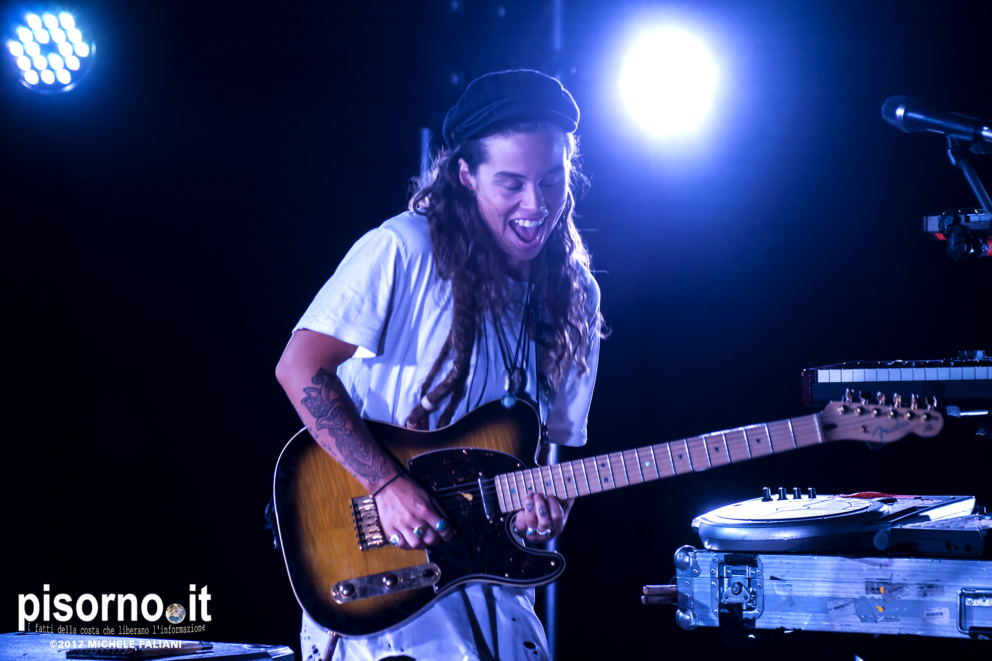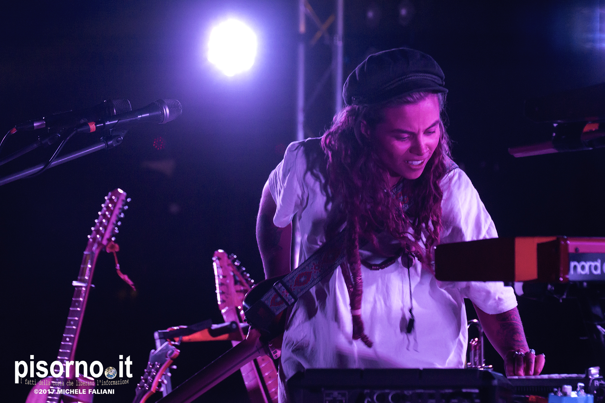 Ieri mattina ho comprato il nuovo album degli Arcade Fire, e l’ho ascoltato nel primo pomeriggio; risultato: 17 euro buttati nel cesso. Un album orrendo, tremendamente lontano dai fasti di “Funeral” e di “Neon bible”, lontano perfino da “The suburbs”. Un po’ la delusione che uno dei gruppi che più ho amato negli ultimi anni si sia (per sempre?) perso per strada, un po’ il caldo, un po’ perché la Livorno-Sestri è l’autostrada più cara del sistema solare, stavo quasi per rimanere a casa anziché recarmi alla terza data del Mojotic. Poi una specie di sesto senso mi ha spinto a partire e ad andare a sentire questa ragazzotta australiana di 22 anni che sta facendo parlare (molto bene) di se. E, col senno di poi, ho fatto benissimo a vincere la pigrizia. Uno show non lunghissimo, un’ora e poco più, ma tanto talento. Tash Sultana si presenta sul palco da sola, con una serie di sintetizzatori drum machines, qualche chitarra, una tromba e una quantità disumana di effetti, tra cui l’immancabile loop station che le serve per creare ‘strati’ di musica sui quali improvvisare e costruire armonie e dinamiche strepitose. Una dopo l’altra piovono “Jungle”, “Mellow marmalade”, “Pretty lady”, “Notion”. Andate ad ascoltarle su YouTube, e vi renderete conto che qualche milione di utenti vi ha preceduto. E per un’artista che ha alle spalle un solo EP e pochissime date (fino a qualche mese fa) al di fuori dell’Australia, non è certo roba da ridere. Tash ha un passato fatto di droghe, dal quale è stata salvata dalla musica; ieri la sua musica ha raddrizzato la mia giornata. Non sarà la stessa cosa, ma credo che lo scopo dei musicisti sia proprio questo. Grazie Tash, alla prossima.