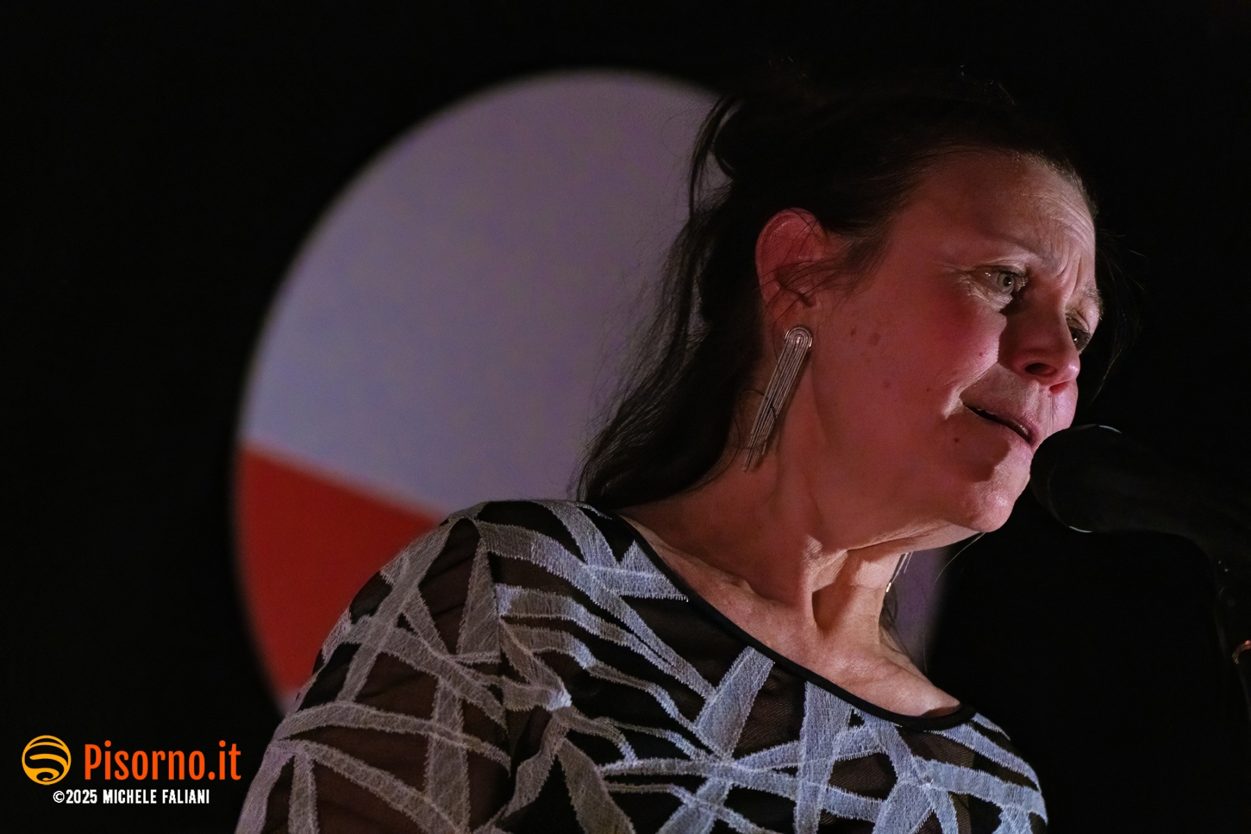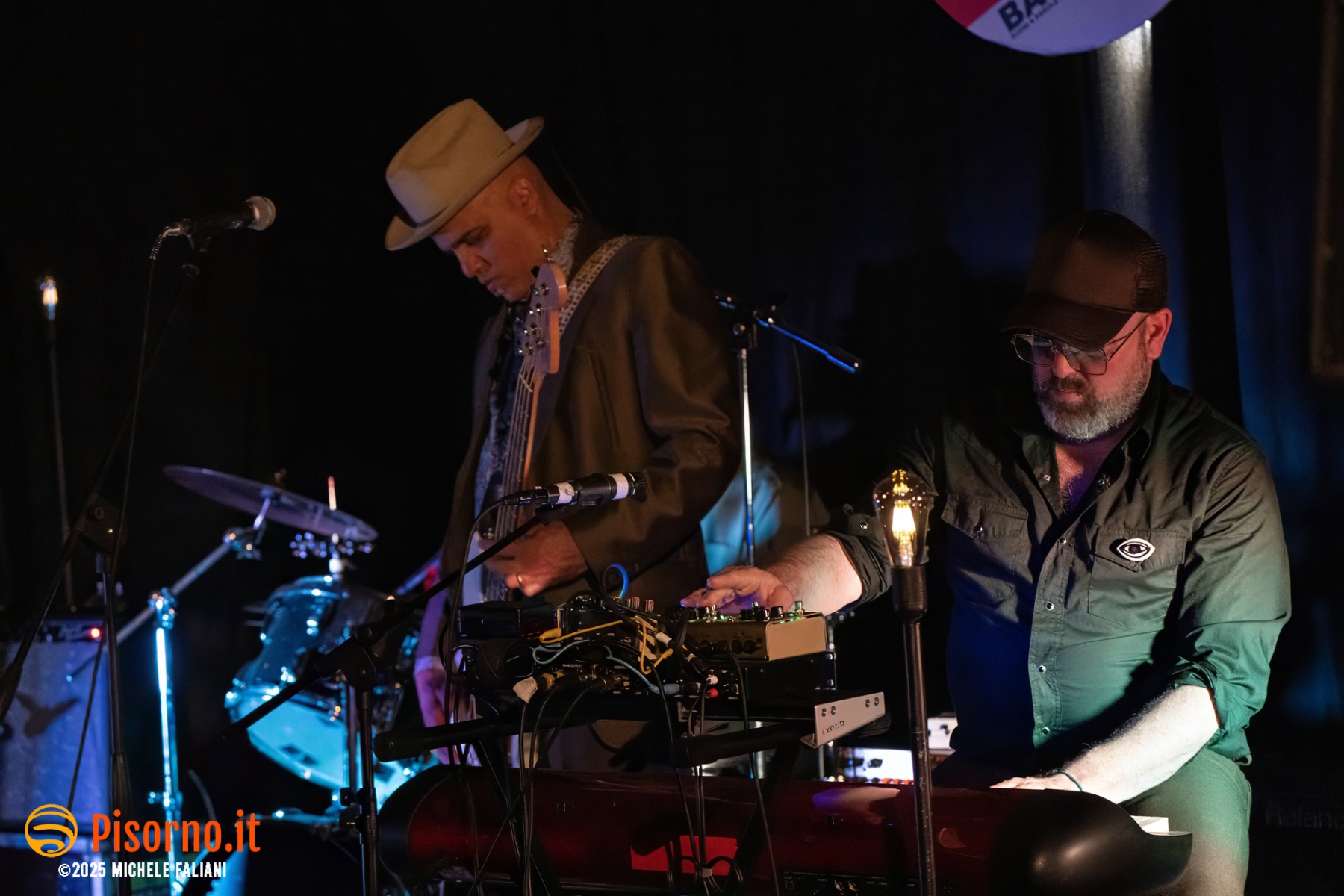 È bastato quel Sol7+, dicevo, perché i Delines proprio non li conoscevo. Non li avevo neanche mai sentiti nominare, accidenti a me, nonostante il suddetto Willy Vlautin fosse stato in passato il leader dei Richmond Fontaine, band a me molto cara. In 5 sul palco (oltre a Vlautin, Amy Boone alla voce, Cory Grey alle tastiere e alla tromba, Sean Oldham alla batteria e Fred Trujillo al basso) hanno avuto il potere di ipnotizzarmi fin dai primi minuti del concerto, con il loro country-rock obliquo e polveroso dal sapore soul, con quella loro eleganza che si sposa con la malinconia delle storie che raccontano. Un suono che talvolta ricorda il rock di frontiera dei Calexico (soprattutto quando Grey soffia nella sua tromba) ma anche alcune cose del periodo anni 80 di Paul Weller; “My blood bleeds the darkest blue” è forse l’episodio più cinematico del set, con le sue atmosfere morriconiane, mentre “The haunting thoughts” è forse l’episodio migliore, con la lunga coda strumentale costruita sull’incontro fra tromba e delay. Ma ogni singola canzone è, davvero, un piccolo capolavoro, una piccola storia che sembra scaturire dalla stessa terra polverosa e ostinata: quella dei lunghi rettilinei desertici, dei pickup arrugginiti, delle esistenze sgangherate ma piene di dignità. Il concerto si chiude con il solo Grey a suonare la sua tastiera e a giocare con i suoi effetti, mentre gli altri 4 membri della band cantano a quattro voci una strepitosa “Dilaudid Diane”, che dopo un encore di quattro brani conclude il concerto. Concerto che è stato preceduto da un’interessante chiacchierata con Willy Vlautin intervistato da Stiv Cantarelli, nella quale il musicista ha parlato dei suoi numerosi romanzi e sul rapporto fra musica e letteratura.