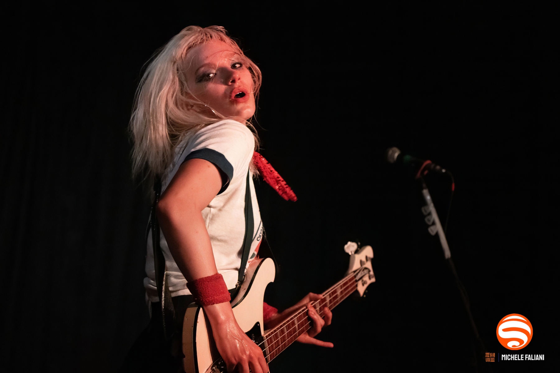 Sul palco, i fratelli non deludono. Matthew, con la sua camicia à la Paul Weller del periodo Jam, suona la chitarra con rabbia, si scontra con i muri della minuscola scena e maltratta un microfono troppo debole per la sua furia. È il classico “lad” inglese, nervi e riff. Issey, con abito e stivali rossi da pin-up e uno sguardo magnetico, brandisce il suo basso Rickenbacker con una sicurezza da veterana. Una coppia che non ha solo il look, ma l’attitudine rock’n’roll in formato XXL.