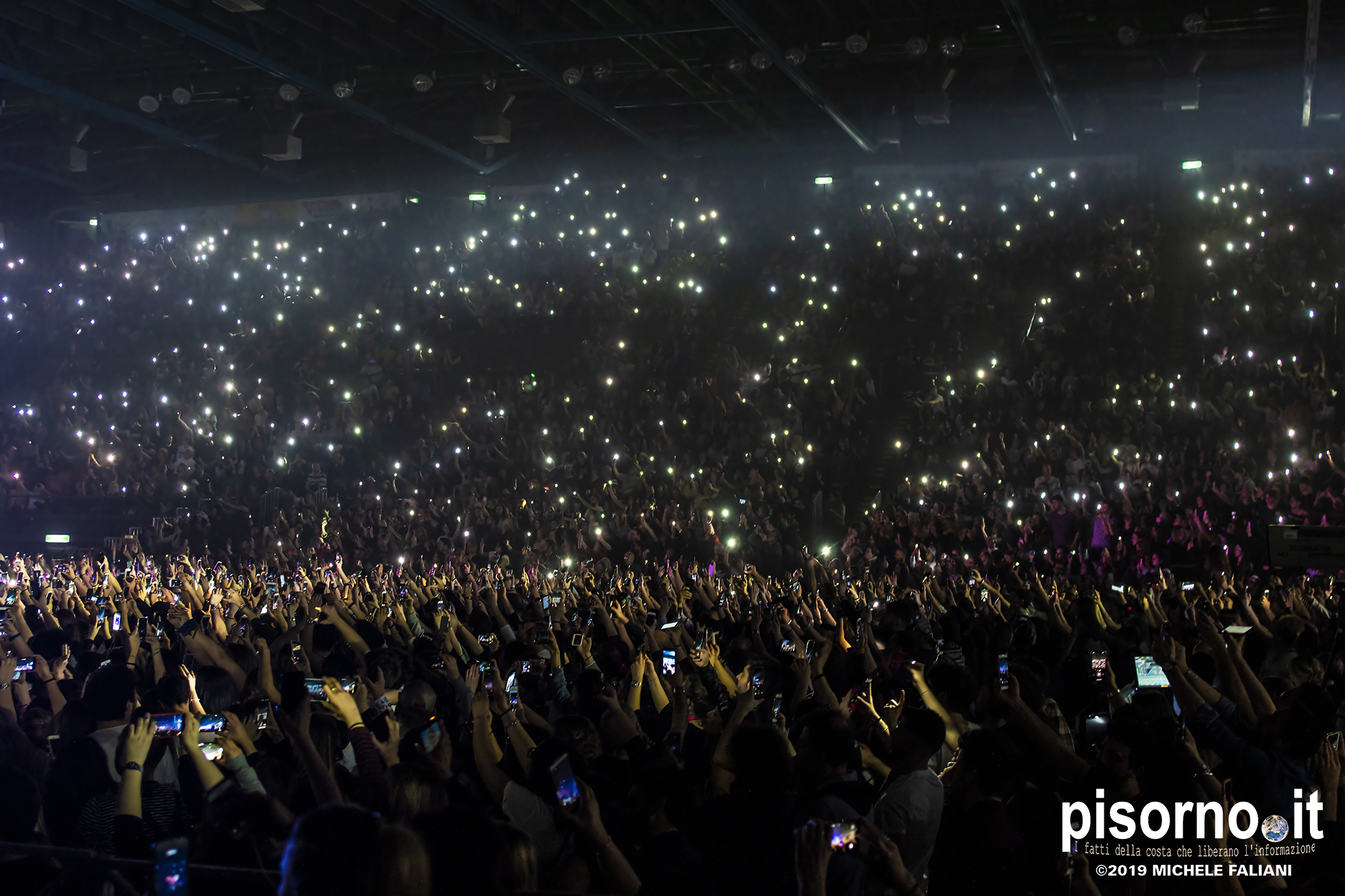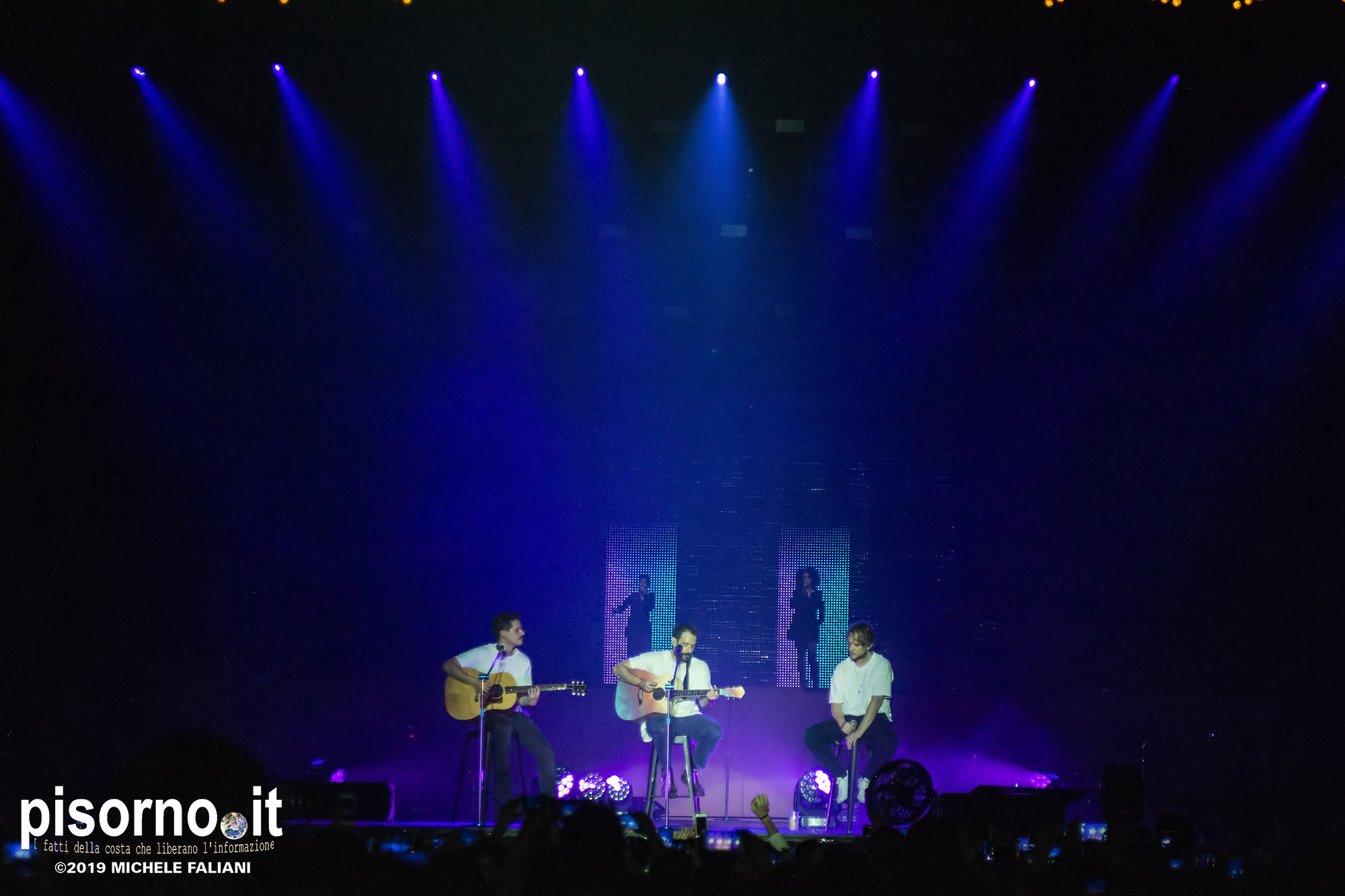 Credo che i Thegiornalisti abbiano il record di maggior numero di haters fra i fruitori di musica, o almeno se la diano alla pari con Ligabue. Io non scambierei mai un disco dei R.E.M. o di Frank Zappa con uno dei loro, ma devo ammettere che invece Tommaso Paradiso e soci riescono a fare piacevoli canzoni pop, prodotte alla perfezione e con melodie che ti entrano nel cervello senza più andarsene. E poi, e questo lo ripeterò fino allo sfinimento, lo scopo dei concerti dal vivo è quello di rendere felici gli spettatori, e di spettatori felici al Nelson Mandela Forum ce ne erano parecchi. Un altro sold out (e questo non è una novità né per la band né per l’impianto fiorentino) e un altro show tecnicamente perfetto, tra le urla delle giovani fans e il singing-along incessante. Tommaso Paradiso, Marco Antonio Musella e Marco Primavera (con loro sul palco Leo Pari ai synth, Walter Pandolfi al basso, un quartetto d’archi e due coriste), hanno eseguito la loro impressionante sequenza di hits da milioni di visualizzazioni, passando da “Sold out” a “Da sola / In the night”, da “Riccione” a “Felicità puttana”, da “New York” a “Questa nostra stupida canzone d’amore”, che hanno confermato quanto ormai i Thegiornalisti siano passati dall’indie al mainstream, meritando di essere idoli dei giovani e dei giovanissimi grazie alle loro capacità di scrivere canzoni in cui ogni ragazzo può riconoscersi. E mi sembra un pregio non da poco.