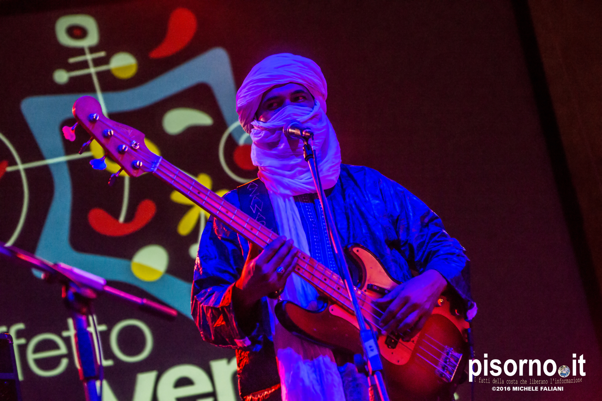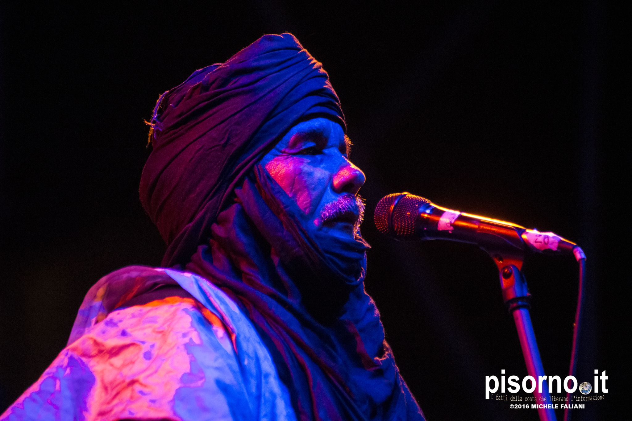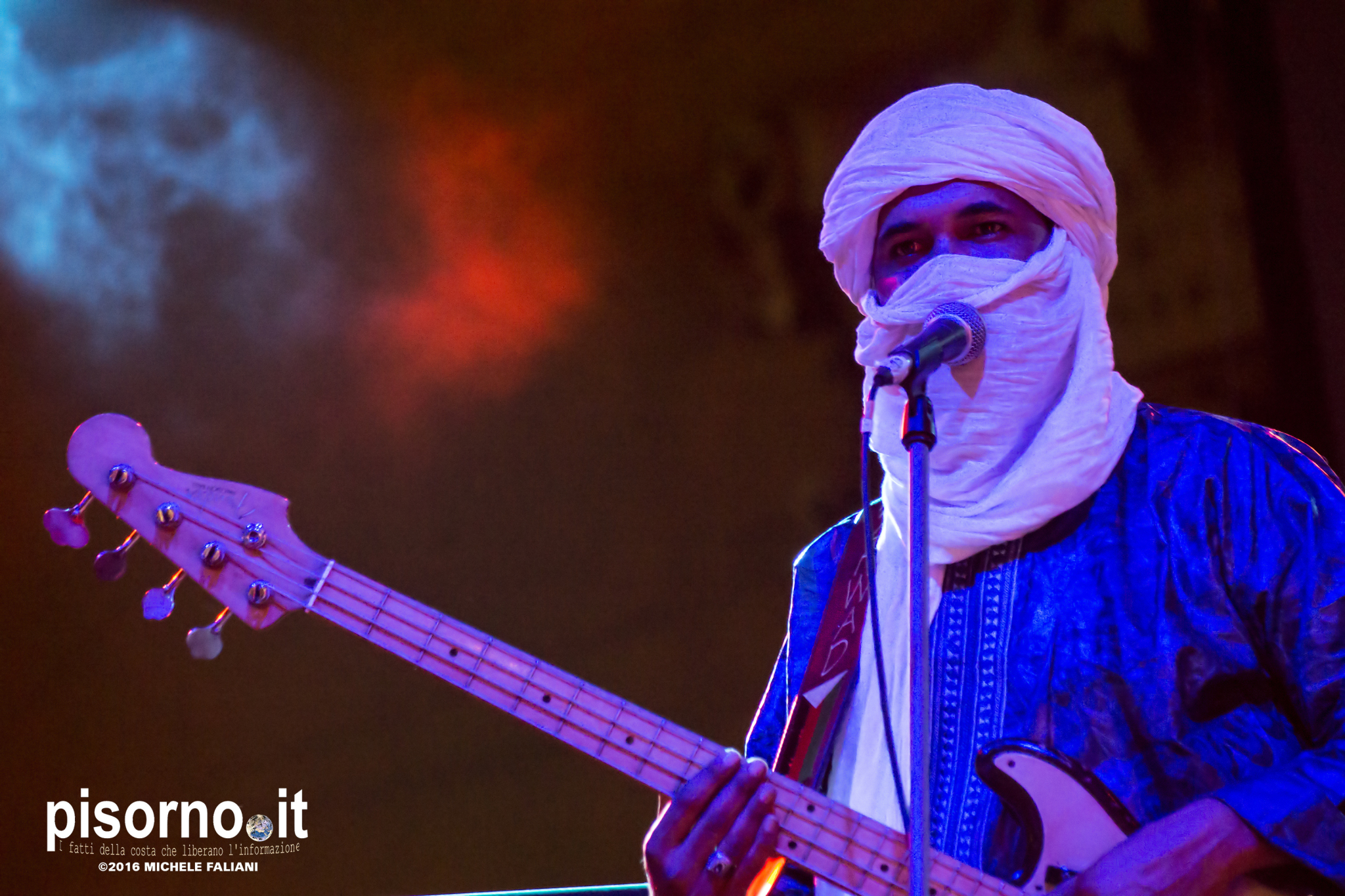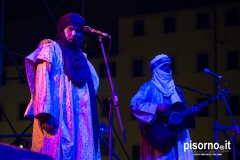 Il loro nome in Tamashék significa “Deserti”, e vengono dalla zona del Mali immediatamente al di là del confine sud dell’Algeria. Sono nati negli anni 80 grazie al fondatore Ibrahim Ag Alhabib, ma hanno deciso di dedicarsi professionalmente alla musica nel 1996. Da allora hanno condiviso i palchi più prestigiosi del mondo e hanno suonato con musicisti come Carlos Santana e Rolling Stones. Sabato sera hanno incantato Livorno con il loro mix fra blues, rock e Tishoumaren, la musica tradizionale dei Tuareg. Un concerto sontuoso, a tratti ipnotico e comunque coinvolgente. Peccato per chi se li è persi.