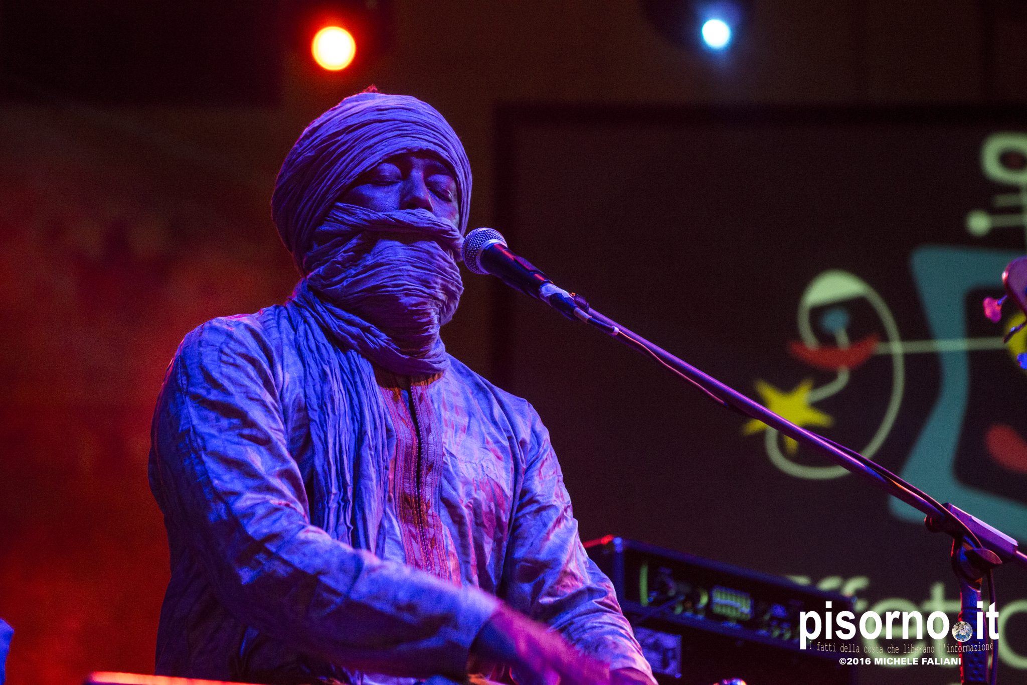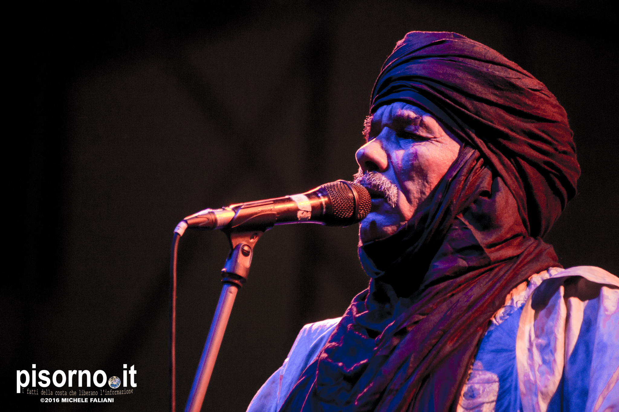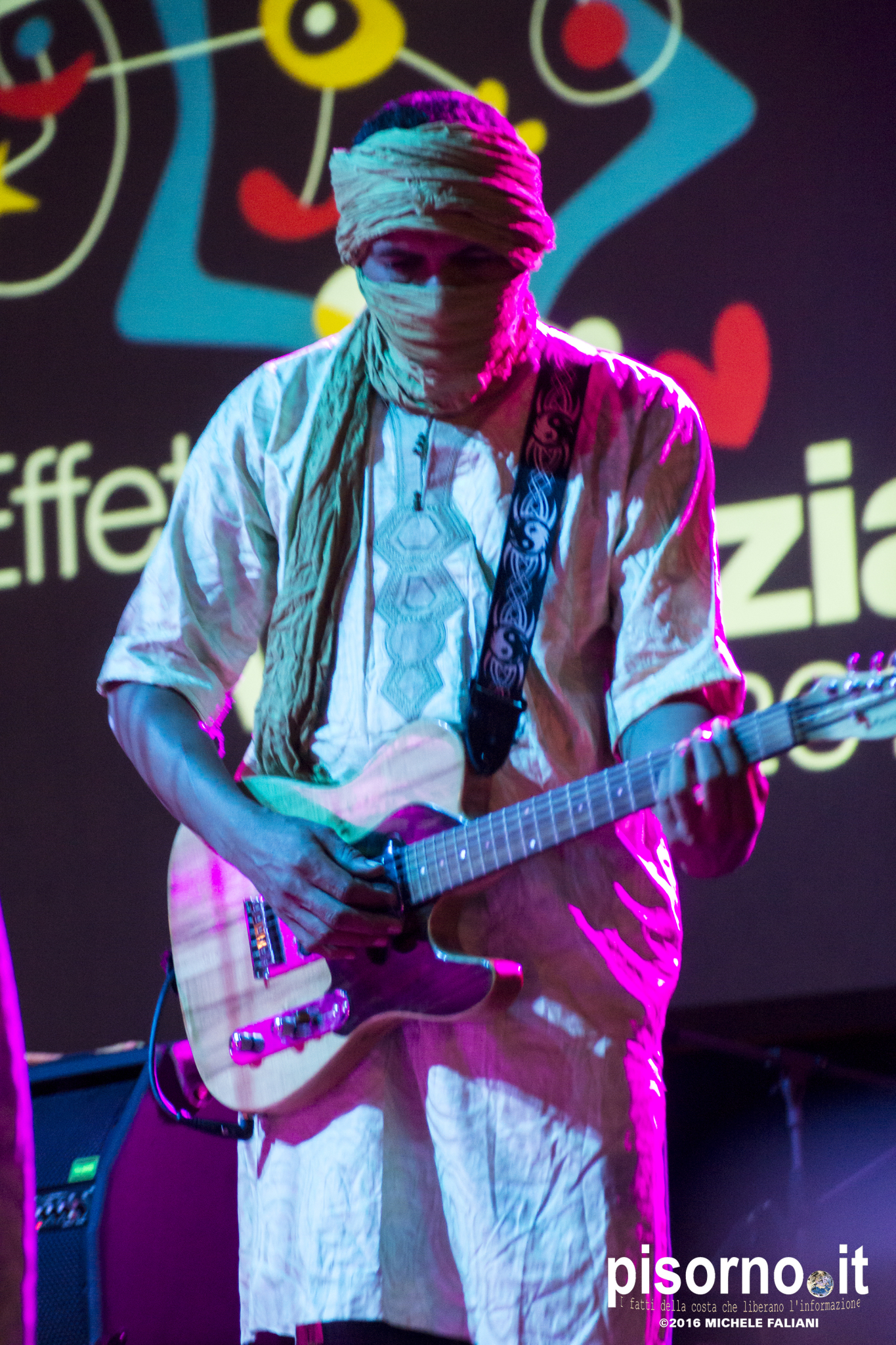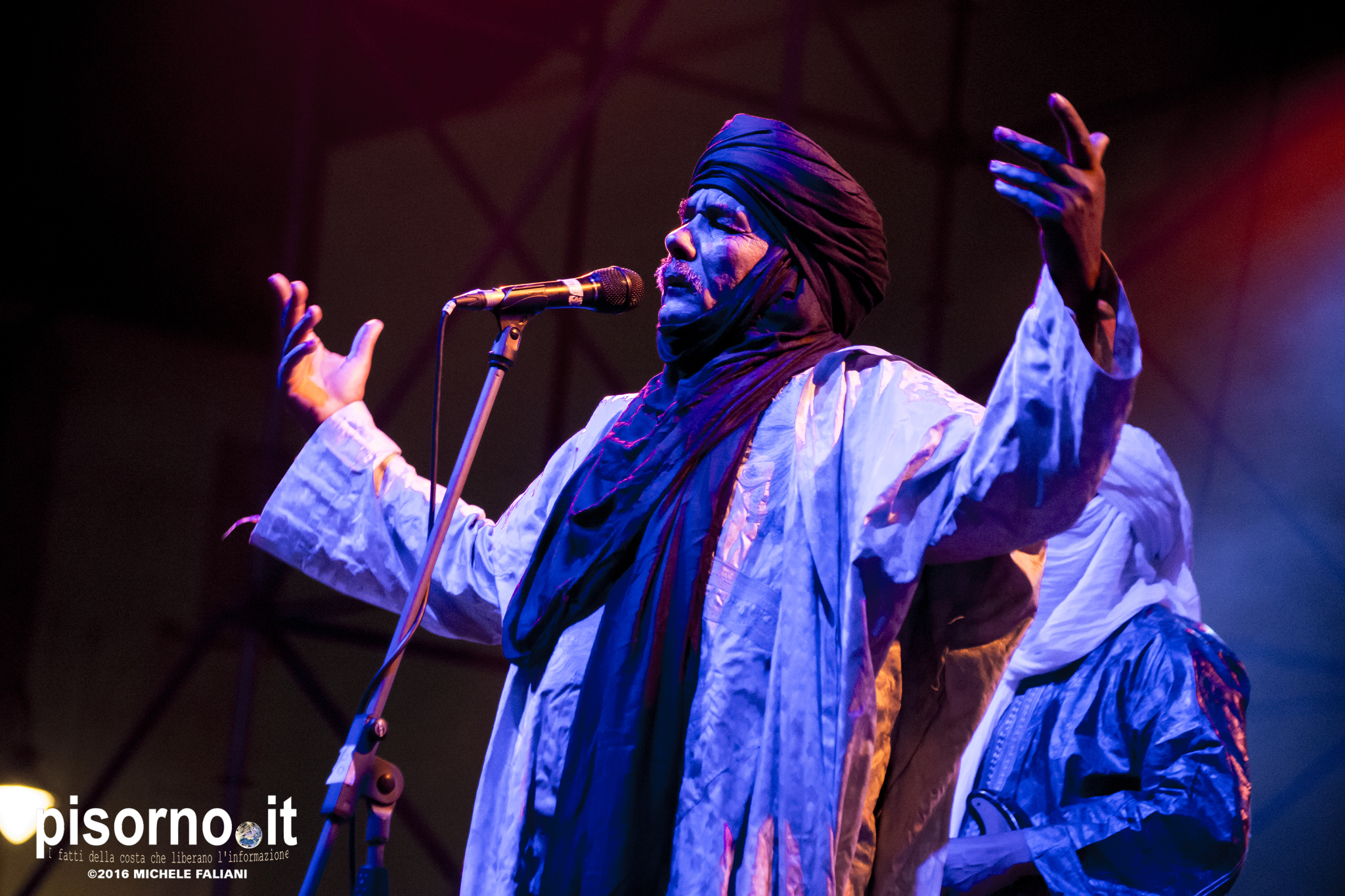 Il loro nome in Tamashék significa “Deserti”, e vengono dalla zona del Mali immediatamente al di là del confine sud dell’Algeria. Sono nati negli anni 80 grazie al fondatore Ibrahim Ag Alhabib, ma hanno deciso di dedicarsi professionalmente alla musica nel 1996. Da allora hanno condiviso i palchi più prestigiosi del mondo e hanno suonato con musicisti come Carlos Santana e Rolling Stones. Sabato sera hanno incantato Livorno con il loro mix fra blues, rock e Tishoumaren, la musica tradizionale dei Tuareg. Un concerto sontuoso, a tratti ipnotico e comunque coinvolgente. Peccato per chi se li è persi.