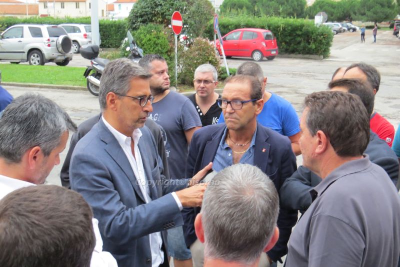 Nella pesante giornata di oggi in fabbrica, oltre a Strazzullo Maurizio (con la CGIL al completo), hanno fatto visita: il capogruppo del Pd Marco Ruggeri, il Sindaco Nogarin, nel pomeriggio anche l’assessore regionale Simoncini e il senatore del PD Marco Filippi, infine arriva Federico Mirabelli. L’assessore regionale Simoncini si appresta ad entrare in fabbrica, circondato dai sindacati, ma prima si chiude in un ufficio, circa trenta minuti per informarsi sulla situazione.