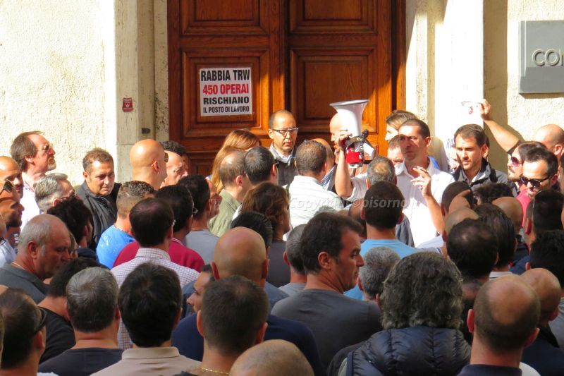 Alle 19 a piccoli gruppi, convinti anche dal Sindaco Nogarin, si scioglie l’assedio alla sede di Confindustria e mentre i vertici TRW (tra fischi e accidenti in indirizzo) si apprestano a lasciare Confindustria, i lavoratori proseguono il percorso della loro incertezza in un, speriamo, non aleatorio, incontro con il Prefetto, incontro concesso per evitare ulteriori problemi di ordine pubblico. Decisione accettata dai dipendenti, pur senza alcuna convinzione ma, dettata certamente dalla stanchezza, da un senso di impotenza nel sentirsi ormai abbandonati sia dello Stato che della politica.