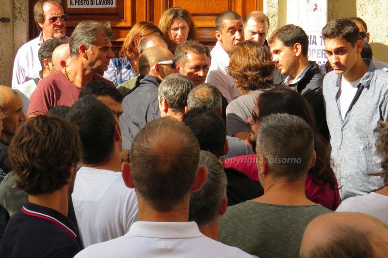 Questa la cronaca fino alle ore 16, in un clima davvero straziante ma anche caratterizzato da smarrimento e incredulità, poi la lunga attesa fino alle 19, ora in cui si era capito perfettamente che il Prefetto non si sarebbe presentato e nel timore che al suo posto sarebbe potuto intervenire il Questore, ovviamente, per sgomberare il presidio e liberare i vertici aziendali aprendogli un via di fuga. Un presidio partecipato e sostenuto anche dalla solidarietà di altri lavoratori provenienti anche da Pisa, Piaggio, Enel, Continental e molte altre realtà produttive.
