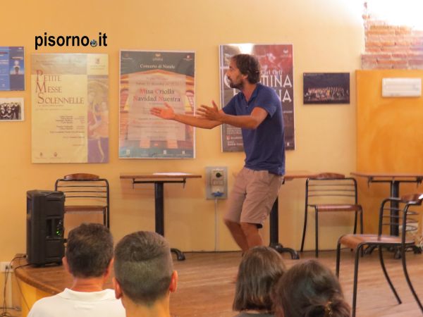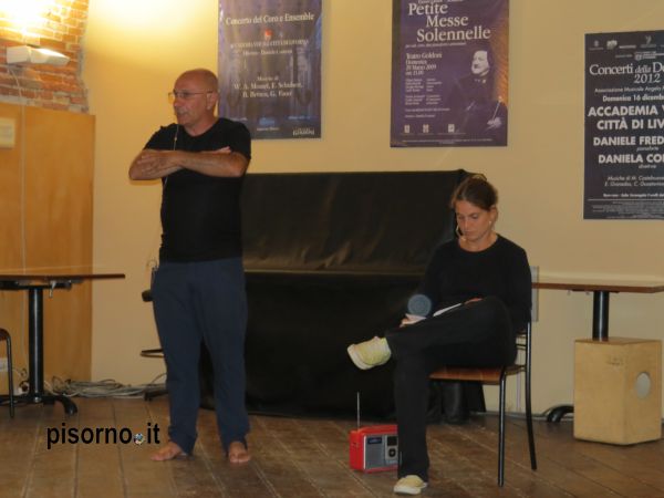 Le musiche di Marco Luini ne hanno sottolineato con intensità i vari passaggi. Poi Lamberto Giannini, accompagnato da Claudia Mazzeranghi, con perfida ironia ha ripercorso la primavera e l’estate del ’43, i tentativi di Mussolini di recuperare consensi e popolarità, i malumori dei suoi collaboratori, la convocazione del Gran Consiglio, il colpo di stato del 25 luglio: impeccabile lezione di storia, ma grande lezione di vis teatrale che ha fatto venire in mente le letture di Dante fatte da Benigni. Il monologo di Michele Crestacci ha tracciato invece un quadro vivacissimo del mondo livornese di quegli anni, l’oppressione dei fascisti e poi dei nazisti, lo spirito ribelle e dissacrante di una città dove una battuta non si nega a nessuno e una risata rischiara anche i momenti più bui.