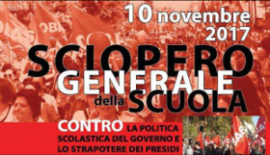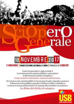 Le organizzazioni sindacali Cib-Unicobas, Cobas-Confederazione dei Comitati di Base, Unione Sindacale di Base hanno indetto per l’intera giornata di venerdì 10 novembre uno sciopero generale nazionale di tutte le categorie pubbliche e private (per il settore del trasporto ferroviario l’astensione dal lavoro è prevista dalle ore 21 di giovedì 9 novembre), manifestazioni nelle principali città.