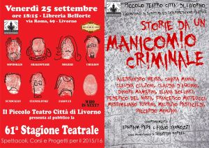 Proprio nell’ottica di portare il Teatro fuori dalle mura dei teatri, dopo la breve presentazione gli attori della Compagnia si esibiranno gratuitamente nei locali stessi della libreria nel divertente “Storie da un manicomio criminale”, frutto originale di un laboratorio di scrittura ed interpretazione teatrale coordinato da Ephraim Pepe e Fabio Vannozzi, ispirato dal testo “Delitti esemplari” di Max Aub. Dopo un primo allestimento per l’ultimo Fi-Pi-Li horror festival, il laboratorio sta proseguendo l’attività in modo permanente ed ha ottenuto grande successo di pubblico nelle rappresentazioni estive.