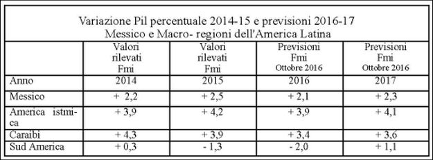 La nuova strategia statunitense è senz’altro stata favorita da alcuni limiti evidenziati nell’azione di governo da parte dei governi progressisti ma anche dall’eccessiva dipendenza dal modello estrattivista. Il calo delle quotazioni delle commodities e l’eccessiva dipendenza da queste ultime, ha condizionato il trend economico dell’intera macroregione che ha registrato un sensibile rallentamento fino a sprofondare nel 2016 in recessione (vedi Tabella 1), aspetto abbastanza infrequente per un’area in fase di sviluppo, in assenza di crisi internazionali. In particolare sta destando particolare preoccupazione il ciclo economico dell’America Meridionale che ha registrato una contrazione della ricchezza prodotta sia nel 2015 che nell’anno appena concluso, condizione difficilmente evitabile dal momento che le 3 principali economie sudamericane, Brasile, Argentina e Venezuela, vedranno il proprio Pil ridursi nel 2016 (Vedi tabella 2).