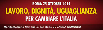 cgil.,Un invito, non poteva mancare alla partecipazione della manifestazione convocata per il 25 ottobre a Roma, contro la cancellazione dei diritti avviata dal Governo Renzi. Non ha dubbi nel sostenere che, il voler cancellare l’art. 18 (già fortemente ridimensionato dalla Fornero) sia una battaglia tutta ideologica, priva di concretezza, ma che dimostra la precisa volontà di affondare definitivamente il mondo del lavoro, approfittando dello stato di debolezza  in cui si trova nell’attuale fase politica ed economica.