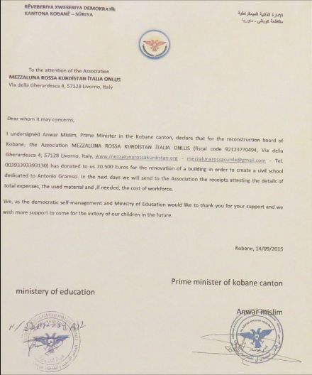 • La carovana si è aperta con un incontro al “Centro Culturale di Suruç dove, il 20luglio 2015, 33 giovani militanti socialisti turchi e kurdi sono stati uccisi in un attentato terroristico, al confine della Turchia, luogo in cui era previsto il progetto di costruire una scuola “la Kobane disrutta”. E’ Alessandro Orfan che sottolinea come la presenza della carovana abbia l’obbiettivo di dare continuità al progetto avviato da questi giovani e, far si che la loro memoria non venga dispersa. A questo proposito, la Mezzaluna Rossa ha consegnato al Primo Ministro del cantone di Kobane un contributo di 20.500 euro, per continuare il progetto, ridare speranza a molti bambini e intitolare la scuola ad Antonio Gramsci. Visitati anche molti campi profughi, solo nella regione di Urfa (Şanlıurfa) attualmente sono circa 126.000 le persone accampate, ignorate e/o vessate dal Governo turco, che provano a sopravvivere grazie, ed esclusivamente, agli aiuti delle municipalità Curde. Visitate anche città dove cittadini turchi vengono perseguitati solo perché di etnia Curda fino all’assurdo macabro che, molte famiglie devono conservare i propri cari defunti nei frigoriferi a causa dell’assedio governativo. Atti di inaudita criminalità contro queste municipalità (a maggioranza curda), dove non si consente neanche una degna sepoltura e dove si registrano bombardamenti, intenzionali, nei cimiteri. Solo fermare la guerra e ricostruire Kobane può restituire un futuro a queste famiglie. (Video: https://youtu.be/XzemLICveeA)