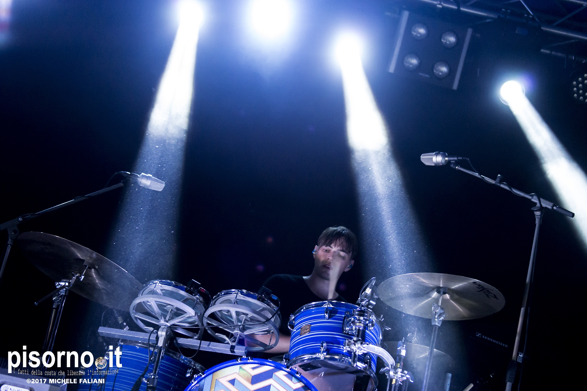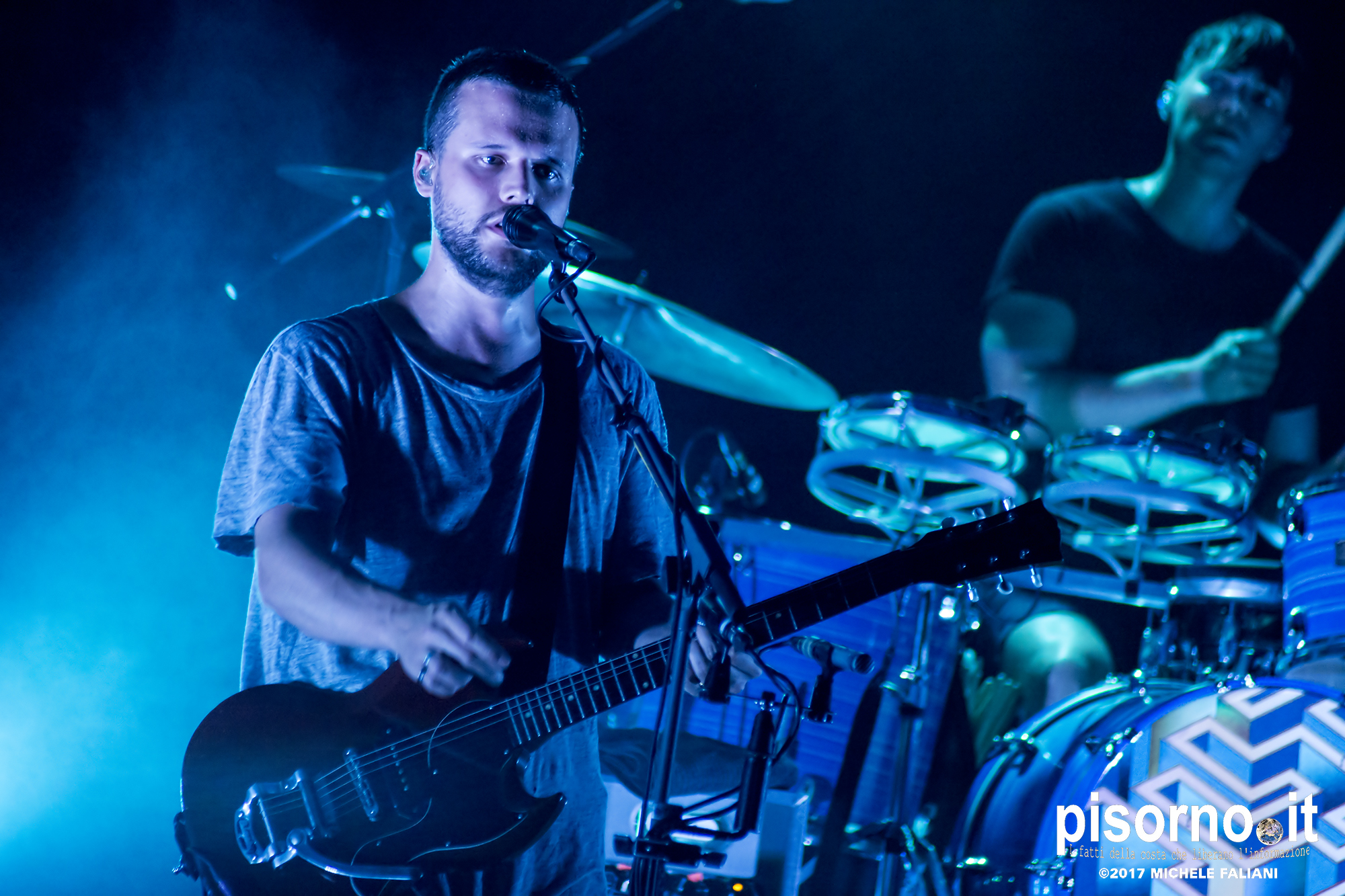 Grande prova dei White Lies al Mojotic di Sestri Levante, una bellissima festa in musica che neanche un improvviso acquazzone è riuscito a rovinare