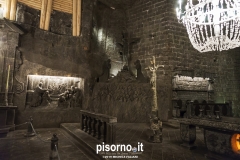 Continuiamo la scoperta di Cracovia e dei suoi dintorni, dopo aver parlato del museo di Auschwitz Birkenau, con la miniera di sale di Wieliczka. Funzionante dal XIII secolo fino al 1996, è adesso sotto la tutela dell’Unesco come patrimonio dell’umanità. Wieliczka è una cittadina di neanche 50000 abitanti, posta 18 km a sud di Cracovia (bellissima città che, ripetiamo, è facilmente raggiungibile da Pisa con economici voli low-cost), che nacque proprio intorno ai primi pozzi scavati per l’estrazione del sale. La miniera è enorme; misura quasi 300 km di gallerie che arrivano fino a 327 metri di profondità, ma la parte visitabile dai turisti arriva 150 metri sottoterra per un percorso che si snoda attraverso sale e gallerie per neanche 4 chilometri. Subito dopo l’ingresso si comincia a scendere, a piedi, per quasi 1000 scalini; alla fine della discesa siamo già oltre 100 metri sotto terra, pronti ad iniziare la visita che, fra camminate e soste, durerà oltre 3 ore. La temperatura all’interno della miniera è di 13-14 gradi in qualsiasi periodo dell’anno, quindi (oltre a scarpe comode) è necessario portarsi abiti adeguati. Una guida che parla italiano (molto economica e consigliatissima) inizia la guida fra le 22 sale, collegate fra cunicoli e gallerie dove sono ancora visibili i segni delle escavazioni. Ogni sala presenta numerose sculture scolpite direttamente nel sale dai minatori, da quella di Niccolò Copernico a quella di Papa Giovanni Paolo II (entrambi visitatori della miniera). Quella più bella è sicuramente la Cappella di Santa Kinga, un’enorme sala che viene utilizzata anche per concerti ed eventi sportivi, illuminata da lampadari adornati con cristalli di sale che creano una luce unica. Lungo il perimetro della sala sono ammirabili altre opere d’arte come una copia dell’ Ultima Cena di Leonardo scolpito direttamente nel sale. Prima di arrivare nella sala dove è stato allestito il ristorante (si mangia benissimo, spendendo molto meno di 10€ a testa), si costeggia anche un laghetto sotterraneo, che rende ancora più emozionante la visita. E, alla fine della visita, c’è un comodo e veloce ascensore che riporta in superficie, che evita di fare i 1000 scalini in salita.