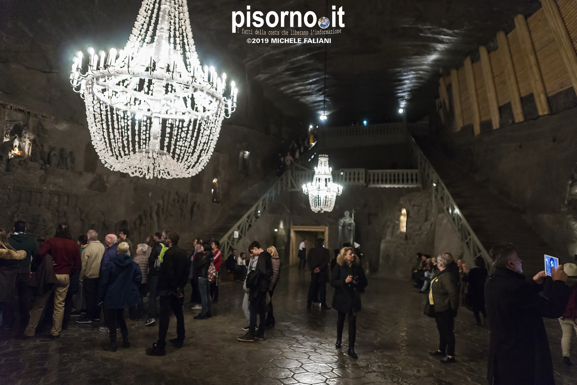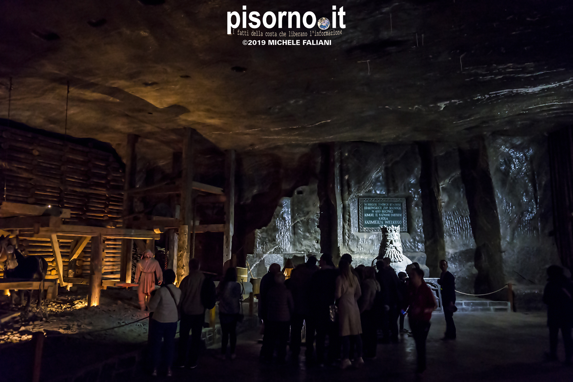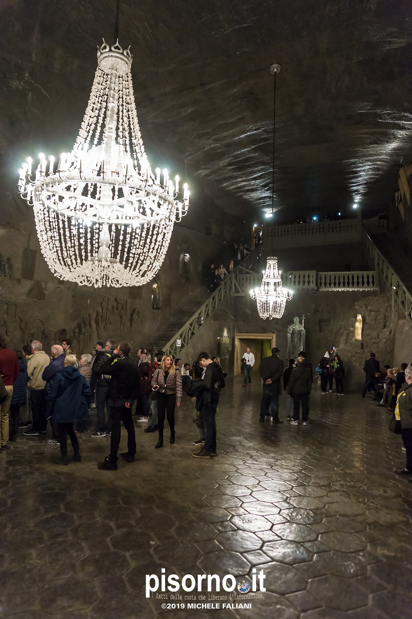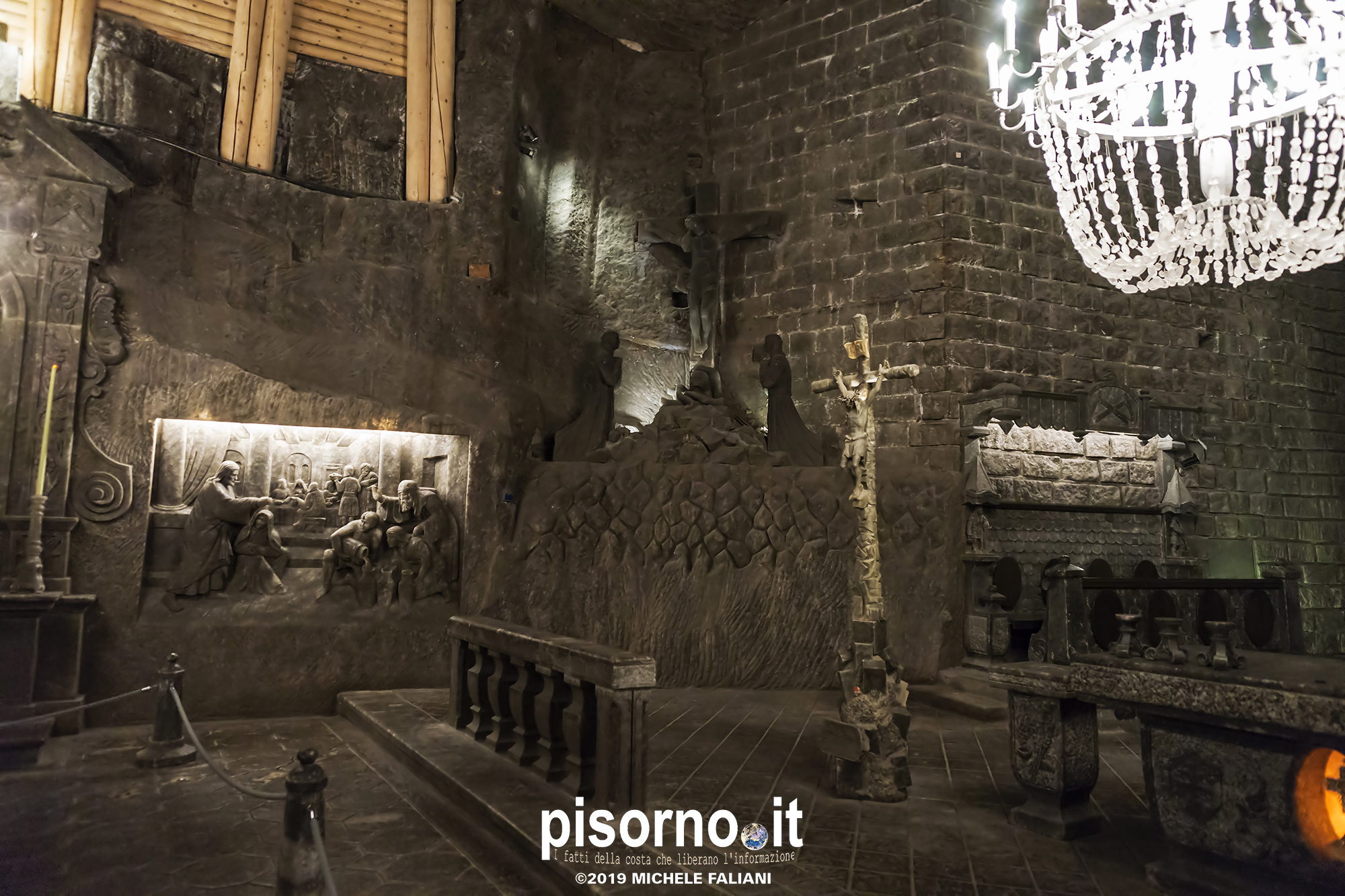 Continuiamo la scoperta di Cracovia e dei suoi dintorni, dopo aver parlato del museo di Auschwitz Birkenau, con la miniera di sale di Wieliczka. Funzionante dal XIII secolo fino al 1996, è adesso sotto la tutela dell’Unesco come patrimonio dell’umanità. Wieliczka è una cittadina di neanche 50000 abitanti, posta 18 km a sud di Cracovia (bellissima città che, ripetiamo, è facilmente raggiungibile da Pisa con economici voli low-cost), che nacque proprio intorno ai primi pozzi scavati per l’estrazione del sale. La miniera è enorme; misura quasi 300 km di gallerie che arrivano fino a 327 metri di profondità, ma la parte visitabile dai turisti arriva 150 metri sottoterra per un percorso che si snoda attraverso sale e gallerie per neanche 4 chilometri. Subito dopo l’ingresso si comincia a scendere, a piedi, per quasi 1000 scalini; alla fine della discesa siamo già oltre 100 metri sotto terra, pronti ad iniziare la visita che, fra camminate e soste, durerà oltre 3 ore. La temperatura all’interno della miniera è di 13-14 gradi in qualsiasi periodo dell’anno, quindi (oltre a scarpe comode) è necessario portarsi abiti adeguati. Una guida che parla italiano (molto economica e consigliatissima) inizia la guida fra le 22 sale, collegate fra cunicoli e gallerie dove sono ancora visibili i segni delle escavazioni. Ogni sala presenta numerose sculture scolpite direttamente nel sale dai minatori, da quella di Niccolò Copernico a quella di Papa Giovanni Paolo II (entrambi visitatori della miniera). Quella più bella è sicuramente la Cappella di Santa Kinga, un’enorme sala che viene utilizzata anche per concerti ed eventi sportivi, illuminata da lampadari adornati con cristalli di sale che creano una luce unica. Lungo il perimetro della sala sono ammirabili altre opere d’arte come una copia dell’ Ultima Cena di Leonardo scolpito direttamente nel sale. Prima di arrivare nella sala dove è stato allestito il ristorante (si mangia benissimo, spendendo molto meno di 10€ a testa), si costeggia anche un laghetto sotterraneo, che rende ancora più emozionante la visita. E, alla fine della visita, c’è un comodo e veloce ascensore che riporta in superficie, che evita di fare i 1000 scalini in salita.