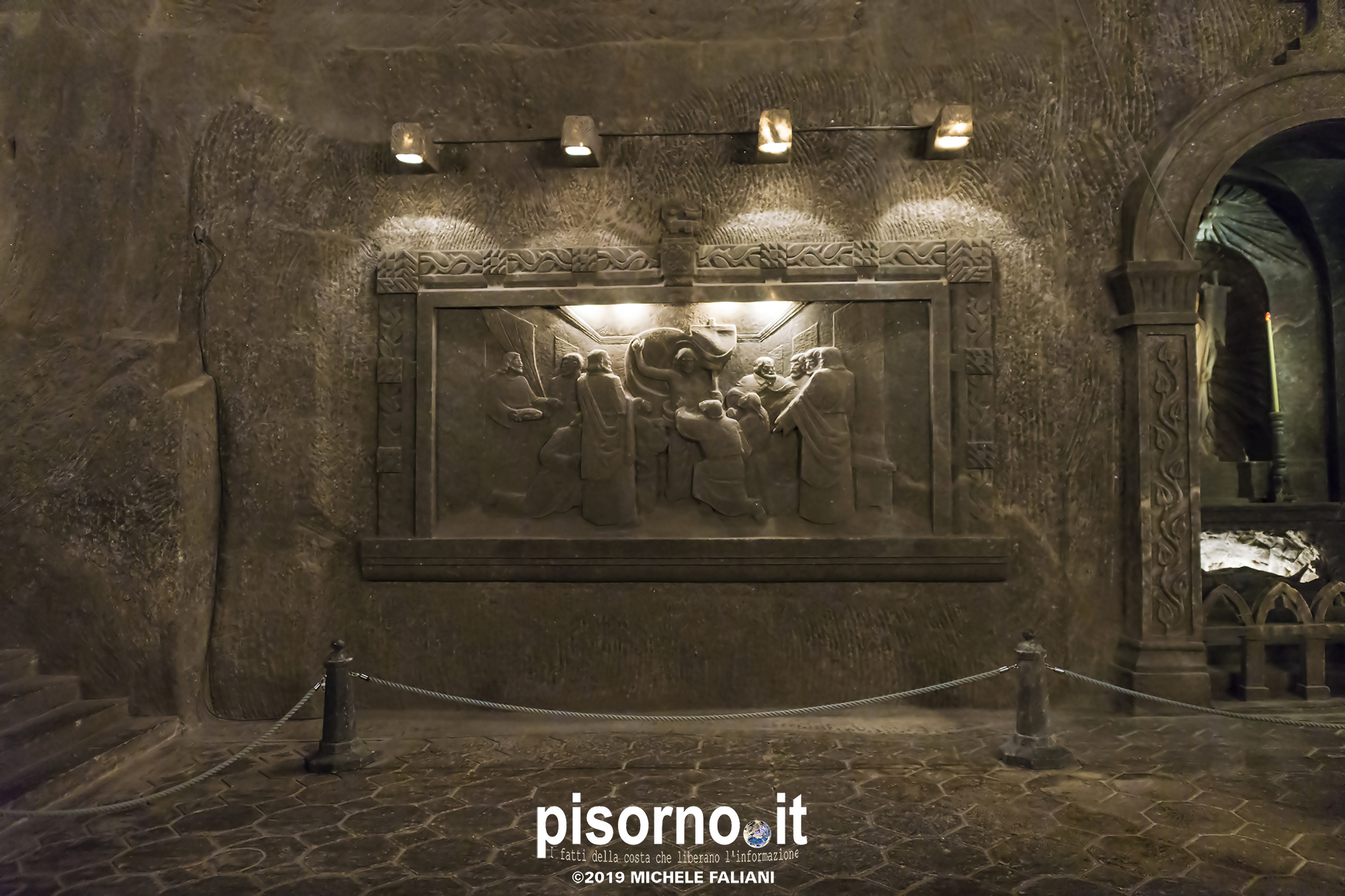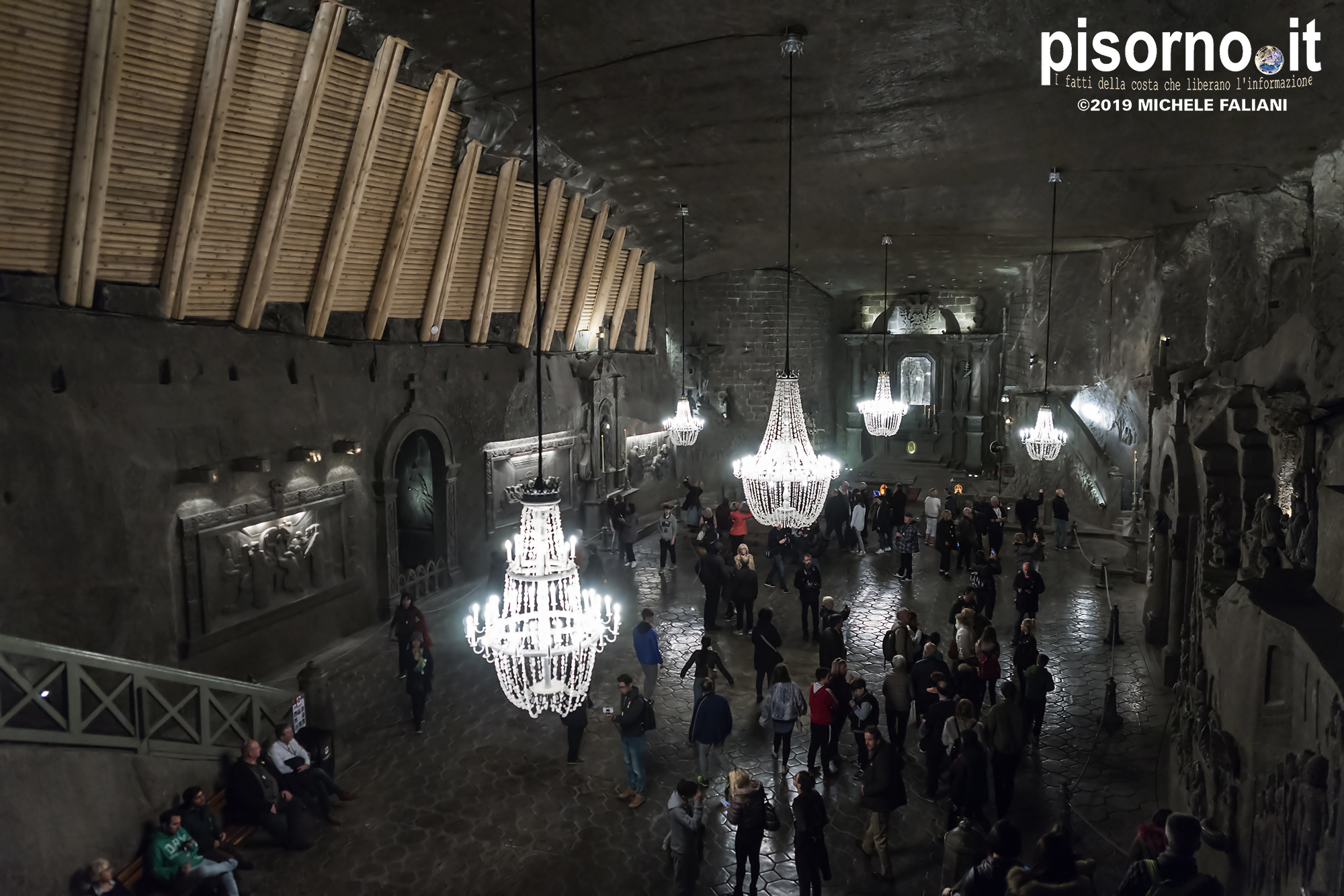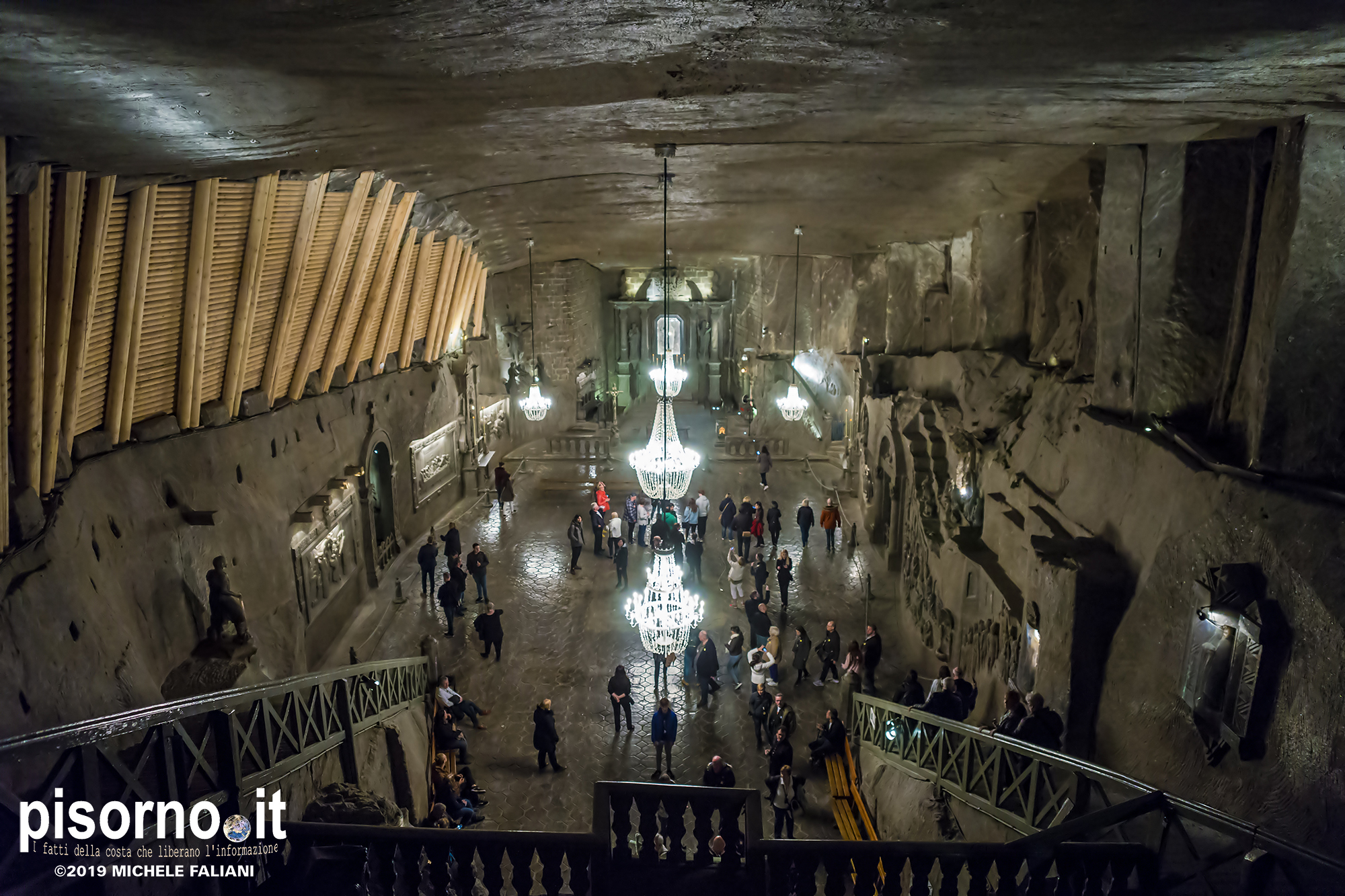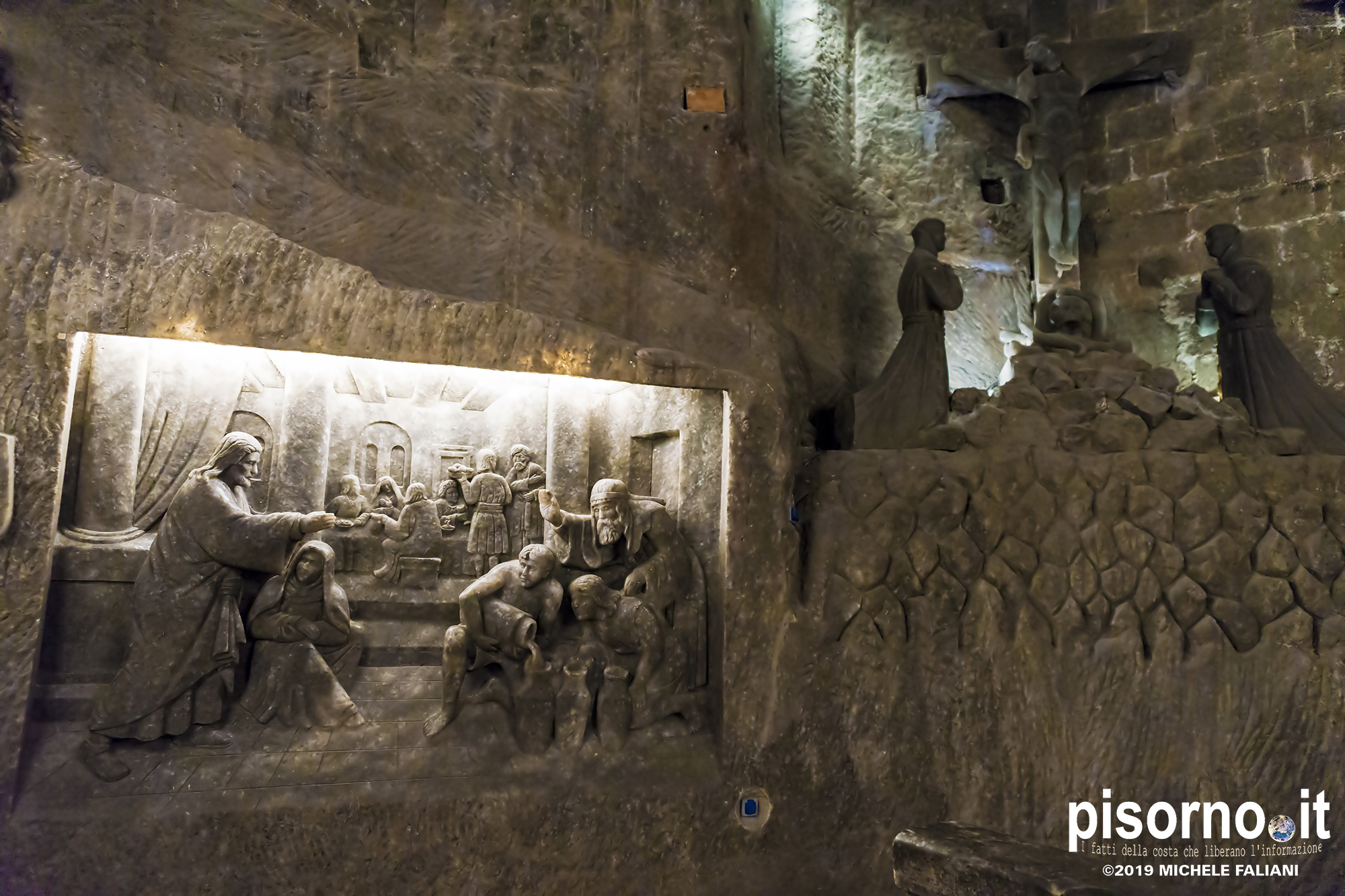 Continuiamo la scoperta di Cracovia e dei suoi dintorni, dopo aver parlato del museo di Auschwitz Birkenau, con la miniera di sale di Wieliczka. Funzionante dal XIII secolo fino al 1996, è adesso sotto la tutela dell’Unesco come patrimonio dell’umanità. Wieliczka è una cittadina di neanche 50000 abitanti, posta 18 km a sud di Cracovia (bellissima città che, ripetiamo, è facilmente raggiungibile da Pisa con economici voli low-cost), che nacque proprio intorno ai primi pozzi scavati per l’estrazione del sale. La miniera è enorme; misura quasi 300 km di gallerie che arrivano fino a 327 metri di profondità, ma la parte visitabile dai turisti arriva 150 metri sottoterra per un percorso che si snoda attraverso sale e gallerie per neanche 4 chilometri. Subito dopo l’ingresso si comincia a scendere, a piedi, per quasi 1000 scalini; alla fine della discesa siamo già oltre 100 metri sotto terra, pronti ad iniziare la visita che, fra camminate e soste, durerà oltre 3 ore. La temperatura all’interno della miniera è di 13-14 gradi in qualsiasi periodo dell’anno, quindi (oltre a scarpe comode) è necessario portarsi abiti adeguati. Una guida che parla italiano (molto economica e consigliatissima) inizia la guida fra le 22 sale, collegate fra cunicoli e gallerie dove sono ancora visibili i segni delle escavazioni. Ogni sala presenta numerose sculture scolpite direttamente nel sale dai minatori, da quella di Niccolò Copernico a quella di Papa Giovanni Paolo II (entrambi visitatori della miniera). Quella più bella è sicuramente la Cappella di Santa Kinga, un’enorme sala che viene utilizzata anche per concerti ed eventi sportivi, illuminata da lampadari adornati con cristalli di sale che creano una luce unica. Lungo il perimetro della sala sono ammirabili altre opere d’arte come una copia dell’ Ultima Cena di Leonardo scolpito direttamente nel sale. Prima di arrivare nella sala dove è stato allestito il ristorante (si mangia benissimo, spendendo molto meno di 10€ a testa), si costeggia anche un laghetto sotterraneo, che rende ancora più emozionante la visita. E, alla fine della visita, c’è un comodo e veloce ascensore che riporta in superficie, che evita di fare i 1000 scalini in salita.
