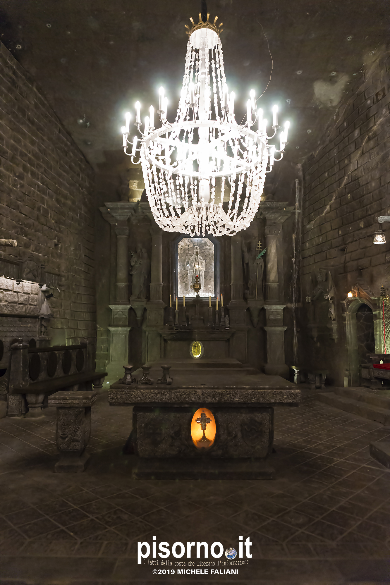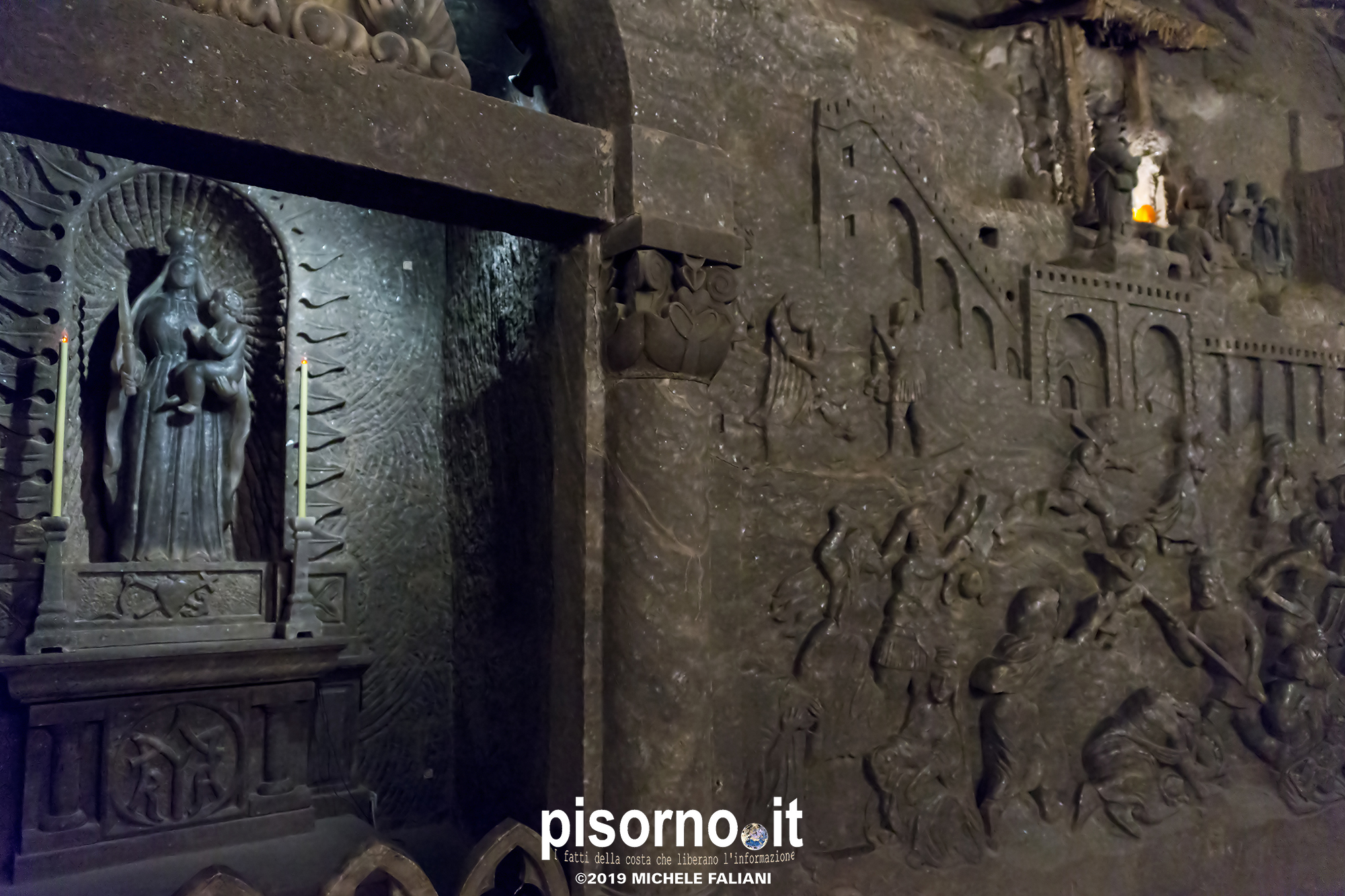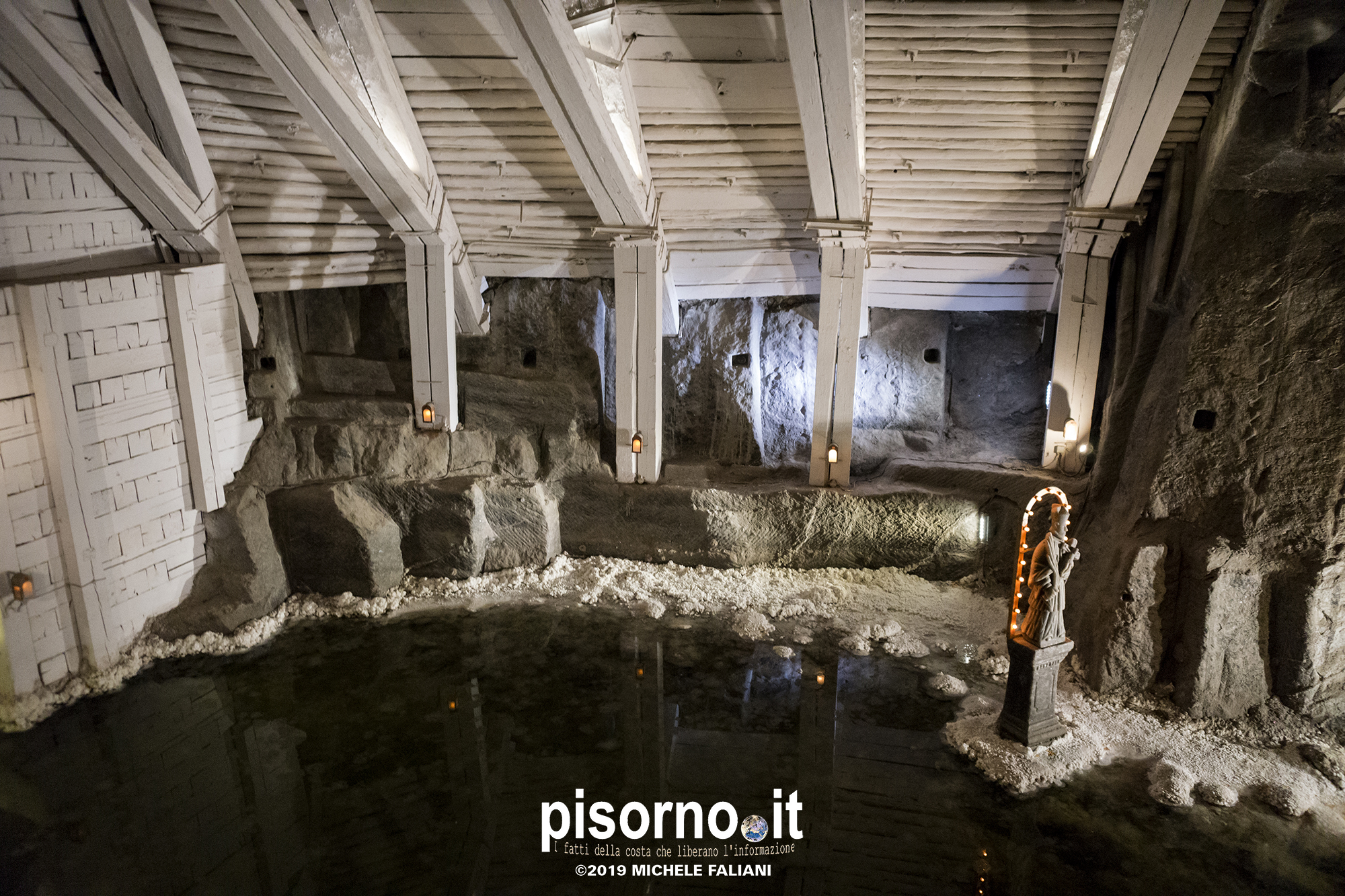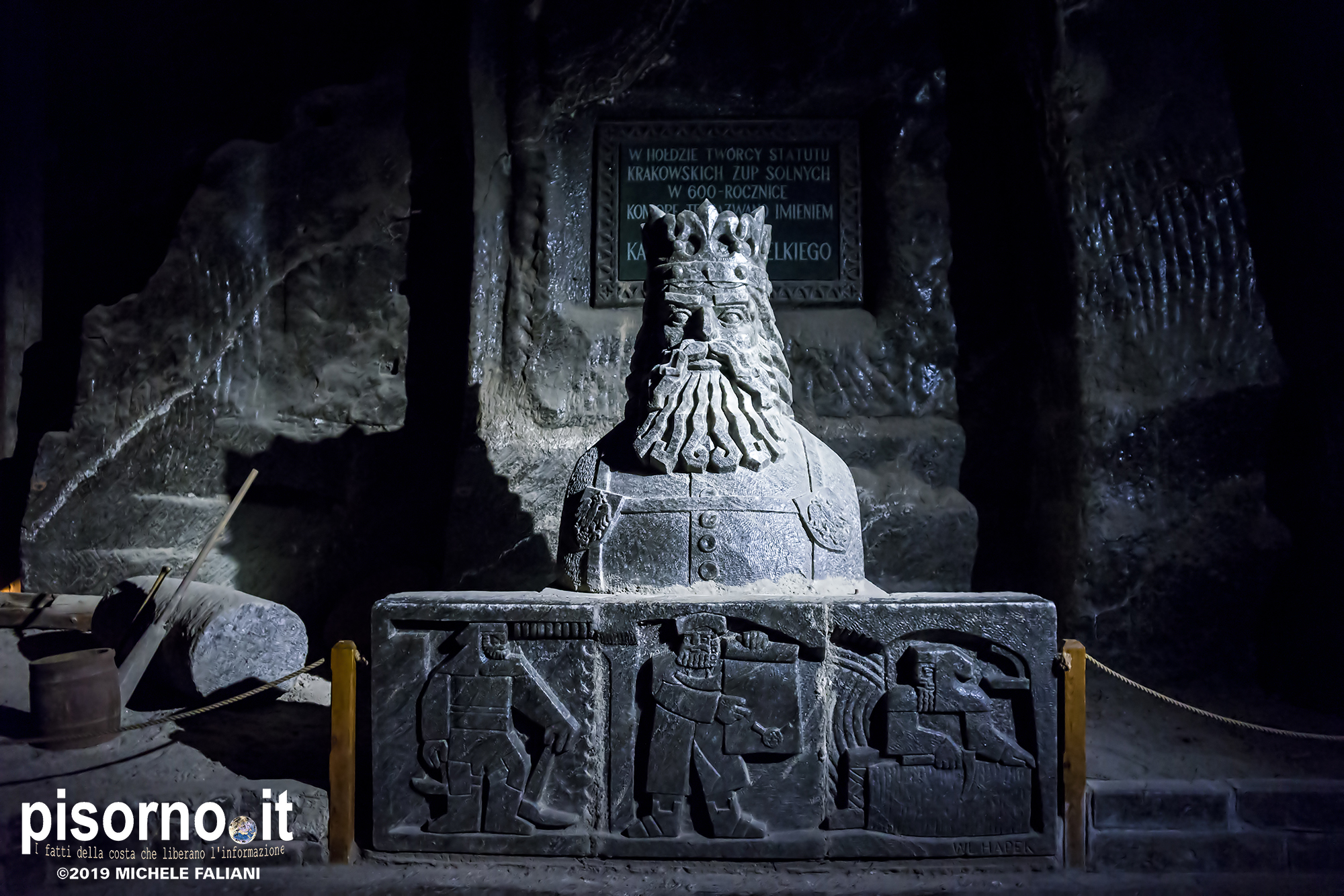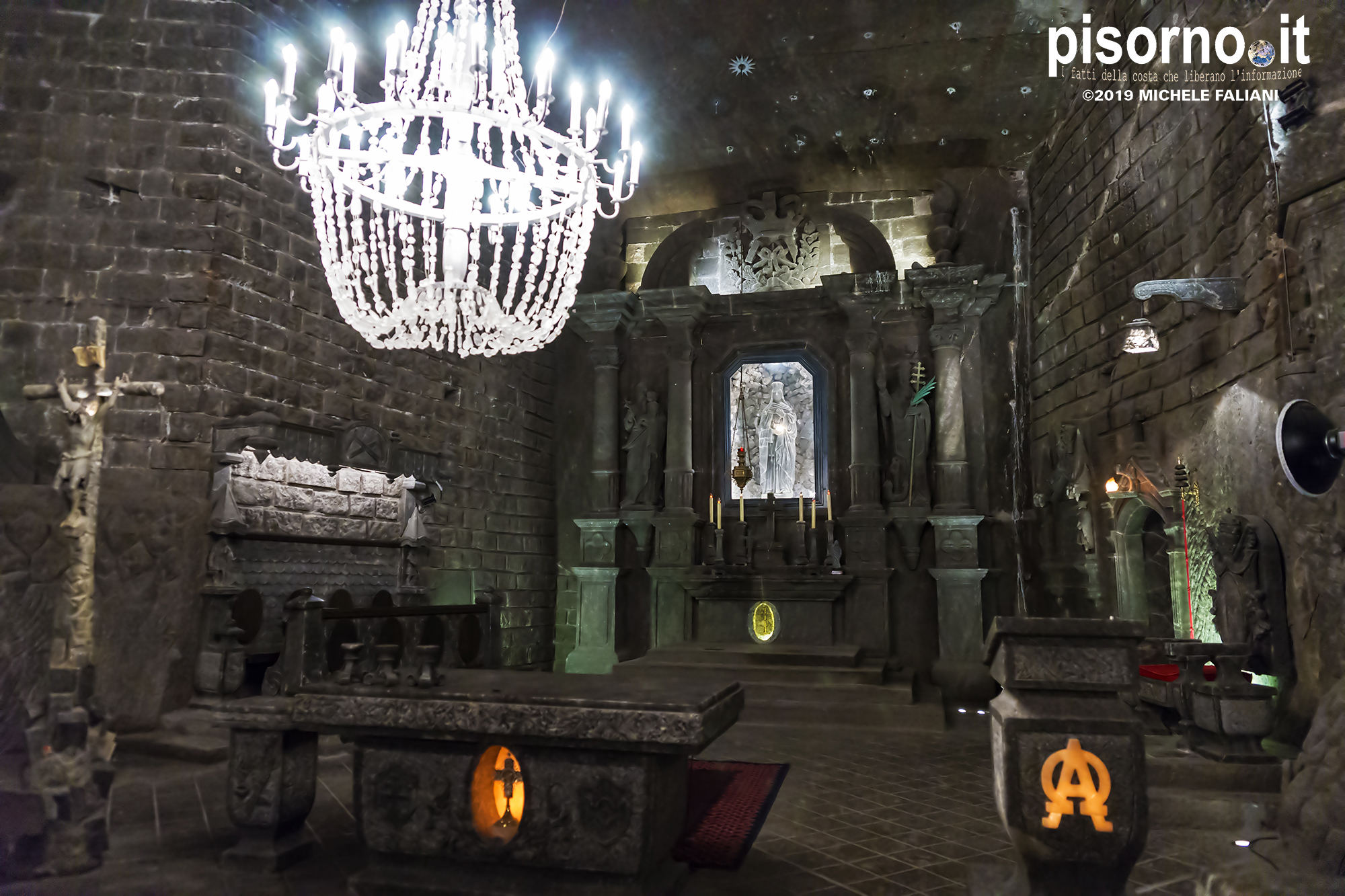 Continuiamo la scoperta di Cracovia e dei suoi dintorni, dopo aver parlato del museo di Auschwitz Birkenau, con la miniera di sale di Wieliczka. Funzionante dal XIII secolo fino al 1996, è adesso sotto la tutela dell’Unesco come patrimonio dell’umanità. Wieliczka è una cittadina di neanche 50000 abitanti, posta 18 km a sud di Cracovia (bellissima città che, ripetiamo, è facilmente raggiungibile da Pisa con economici voli low-cost), che nacque proprio intorno ai primi pozzi scavati per l’estrazione del sale. La miniera è enorme; misura quasi 300 km di gallerie che arrivano fino a 327 metri di profondità, ma la parte visitabile dai turisti arriva 150 metri sottoterra per un percorso che si snoda attraverso sale e gallerie per neanche 4 chilometri. Subito dopo l’ingresso si comincia a scendere, a piedi, per quasi 1000 scalini; alla fine della discesa siamo già oltre 100 metri sotto terra, pronti ad iniziare la visita che, fra camminate e soste, durerà oltre 3 ore. La temperatura all’interno della miniera è di 13-14 gradi in qualsiasi periodo dell’anno, quindi (oltre a scarpe comode) è necessario portarsi abiti adeguati. Una guida che parla italiano (molto economica e consigliatissima) inizia la guida fra le 22 sale, collegate fra cunicoli e gallerie dove sono ancora visibili i segni delle escavazioni. Ogni sala presenta numerose sculture scolpite direttamente nel sale dai minatori, da quella di Niccolò Copernico a quella di Papa Giovanni Paolo II (entrambi visitatori della miniera). Quella più bella è sicuramente la Cappella di Santa Kinga, un’enorme sala che viene utilizzata anche per concerti ed eventi sportivi, illuminata da lampadari adornati con cristalli di sale che creano una luce unica. Lungo il perimetro della sala sono ammirabili altre opere d’arte come una copia dell’ Ultima Cena di Leonardo scolpito direttamente nel sale. Prima di arrivare nella sala dove è stato allestito il ristorante (si mangia benissimo, spendendo molto meno di 10€ a testa), si costeggia anche un laghetto sotterraneo, che rende ancora più emozionante la visita. E, alla fine della visita, c’è un comodo e veloce ascensore che riporta in superficie, che evita di fare i 1000 scalini in salita.