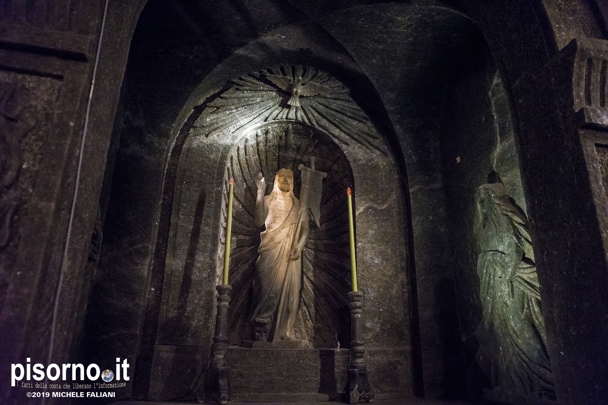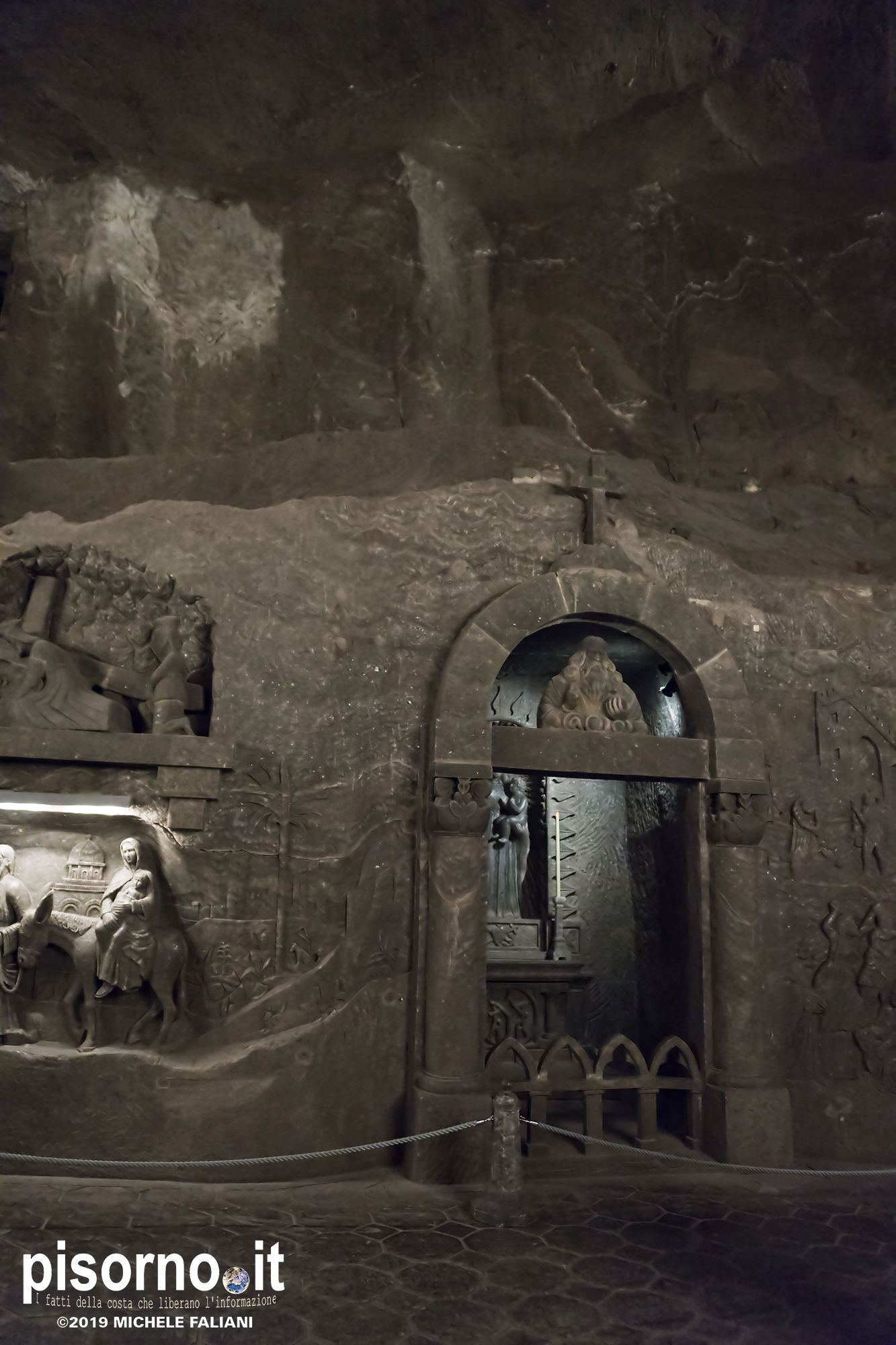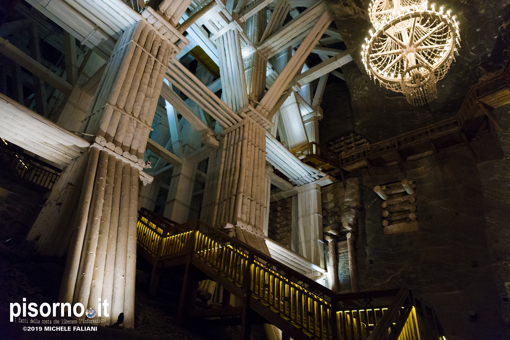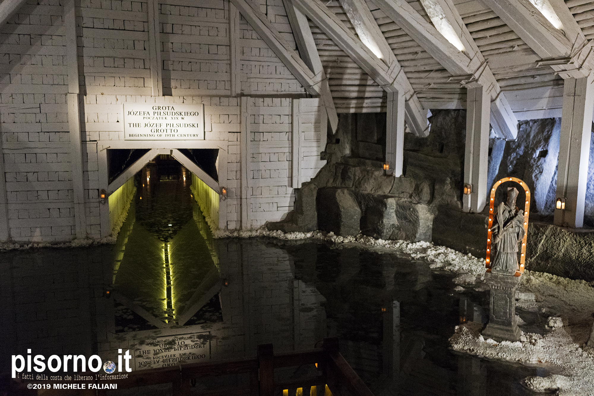 Continuiamo la scoperta di Cracovia e dei suoi dintorni, dopo aver parlato del museo di Auschwitz Birkenau, con la miniera di sale di Wieliczka. Funzionante dal XIII secolo fino al 1996, è adesso sotto la tutela dell’Unesco come patrimonio dell’umanità. Wieliczka è una cittadina di neanche 50000 abitanti, posta 18 km a sud di Cracovia (bellissima città che, ripetiamo, è facilmente raggiungibile da Pisa con economici voli low-cost), che nacque proprio intorno ai primi pozzi scavati per l’estrazione del sale. La miniera è enorme; misura quasi 300 km di gallerie che arrivano fino a 327 metri di profondità, ma la parte visitabile dai turisti arriva 150 metri sottoterra per un percorso che si snoda attraverso sale e gallerie per neanche 4 chilometri. Subito dopo l’ingresso si comincia a scendere, a piedi, per quasi 1000 scalini; alla fine della discesa siamo già oltre 100 metri sotto terra, pronti ad iniziare la visita che, fra camminate e soste, durerà oltre 3 ore. La temperatura all’interno della miniera è di 13-14 gradi in qualsiasi periodo dell’anno, quindi (oltre a scarpe comode) è necessario portarsi abiti adeguati. Una guida che parla italiano (molto economica e consigliatissima) inizia la guida fra le 22 sale, collegate fra cunicoli e gallerie dove sono ancora visibili i segni delle escavazioni. Ogni sala presenta numerose sculture scolpite direttamente nel sale dai minatori, da quella di Niccolò Copernico a quella di Papa Giovanni Paolo II (entrambi visitatori della miniera). Quella più bella è sicuramente la Cappella di Santa Kinga, un’enorme sala che viene utilizzata anche per concerti ed eventi sportivi, illuminata da lampadari adornati con cristalli di sale che creano una luce unica. Lungo il perimetro della sala sono ammirabili altre opere d’arte come una copia dell’ Ultima Cena di Leonardo scolpito direttamente nel sale. Prima di arrivare nella sala dove è stato allestito il ristorante (si mangia benissimo, spendendo molto meno di 10€ a testa), si costeggia anche un laghetto sotterraneo, che rende ancora più emozionante la visita. E, alla fine della visita, c’è un comodo e veloce ascensore che riporta in superficie, che evita di fare i 1000 scalini in salita.