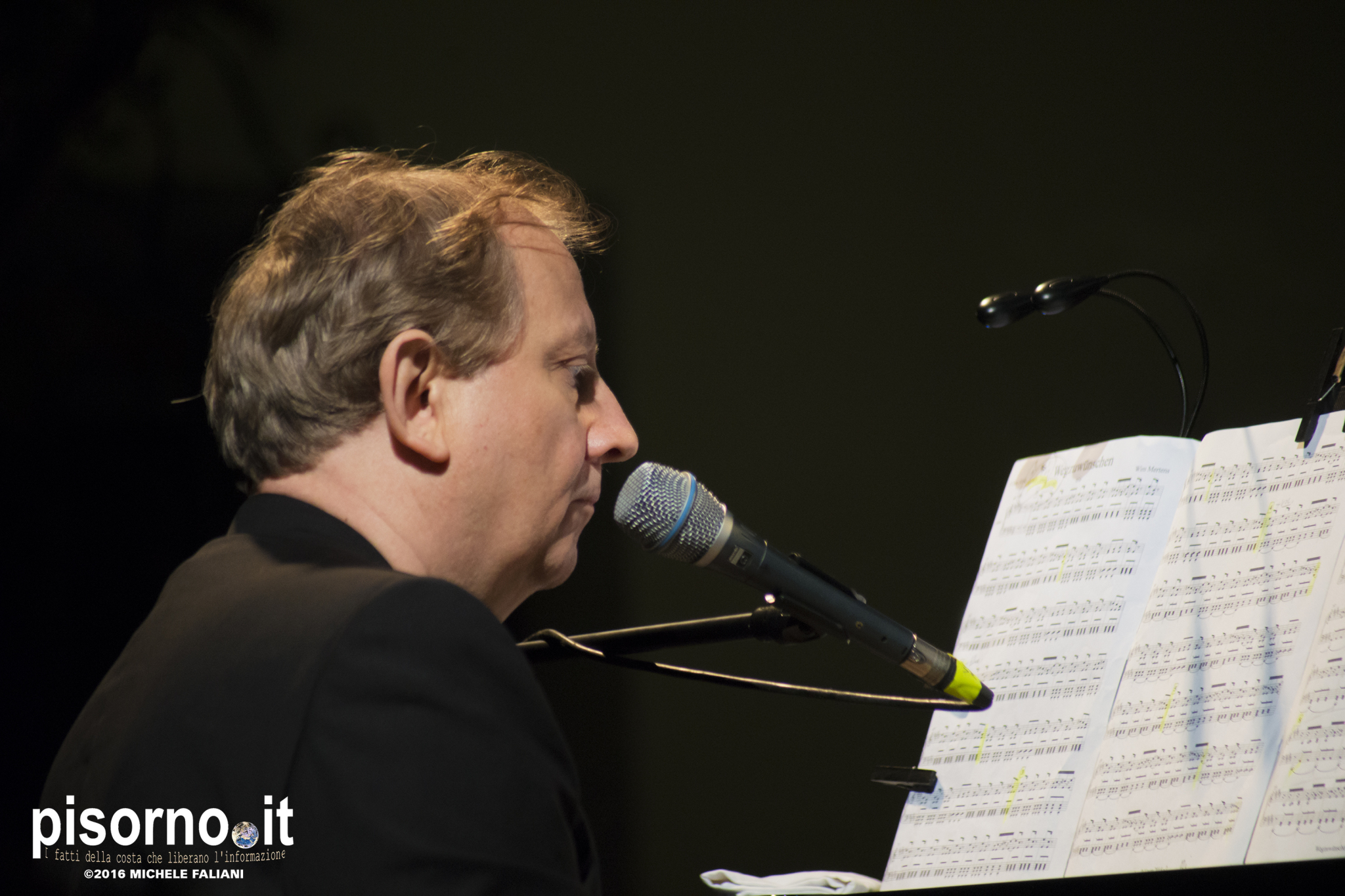 Wim Mertens, accompagnato da Dirk Descheemaeker (straordinario sassofonista e clarinettista), sale sul palco alle 21,30 ed inizia ad accarezzare lo splendido Yamaha a coda. Un’ora e un quarto di composizioni nuove (“Unwillen – Nichtwollen” su tutte) e vecchi classici, con le immancabili “Struggle for pleasure” e “Close cover” che lo hanno reso celebre ad inizio anni ’90 anche qua in Italia. Il grande compositore belga ha eseguito un set straordinario, a metà fra minimalismo (i suoi ispiratori sono Philip Glass e Michael Nyman) e spirito classico dalla forte connotazione melodica.