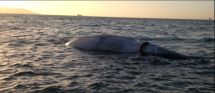 Una carcassa di balenottera (Balaenoptera physalus), esemplare maschio della lunghezza di 15 metri circa e del peso di 20-25 tonnellate, si e’ spiaggiata nei pressi dell’arenile del bagno Cavallone a Lido di Camaiore, in Versilia.