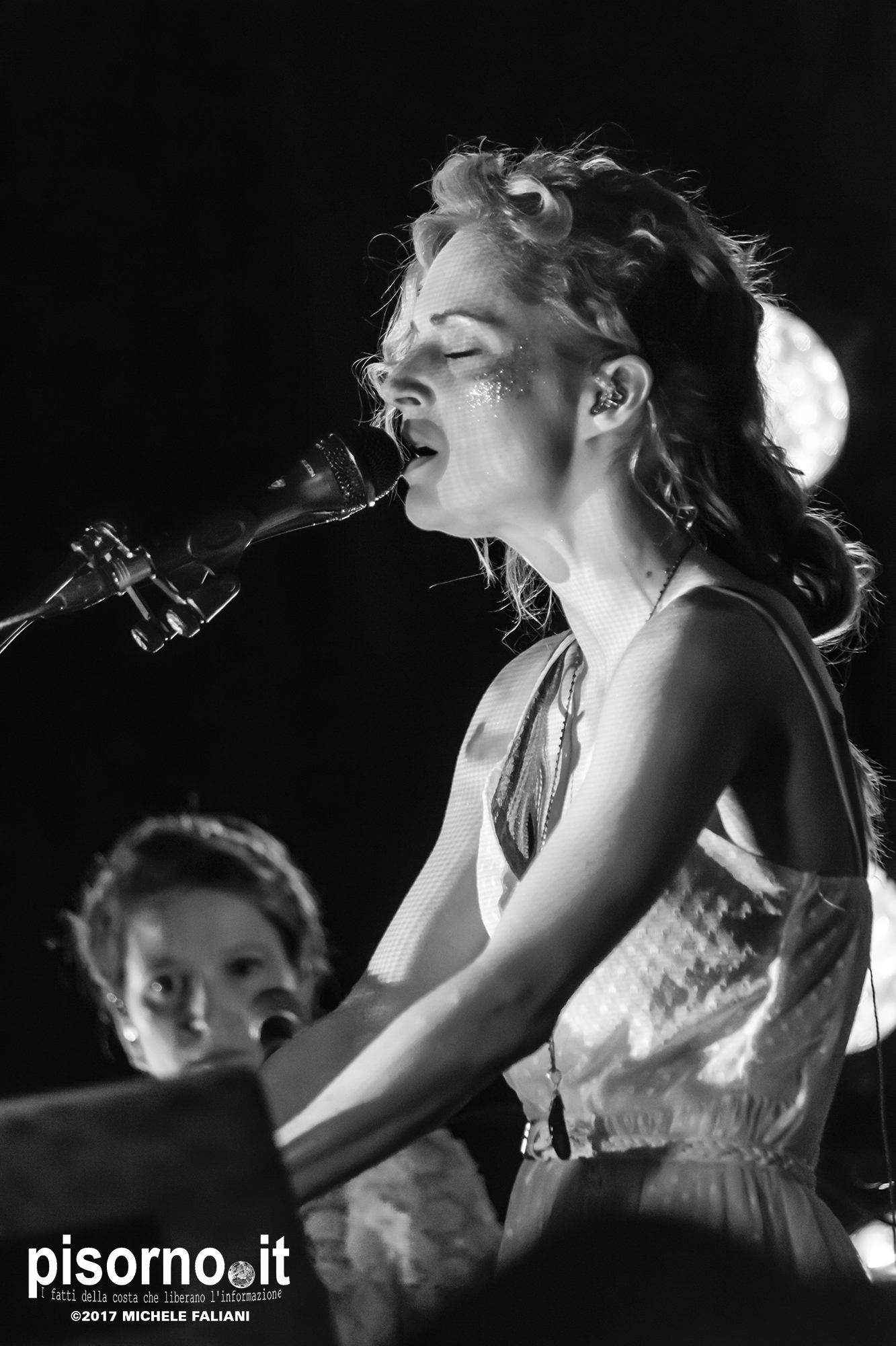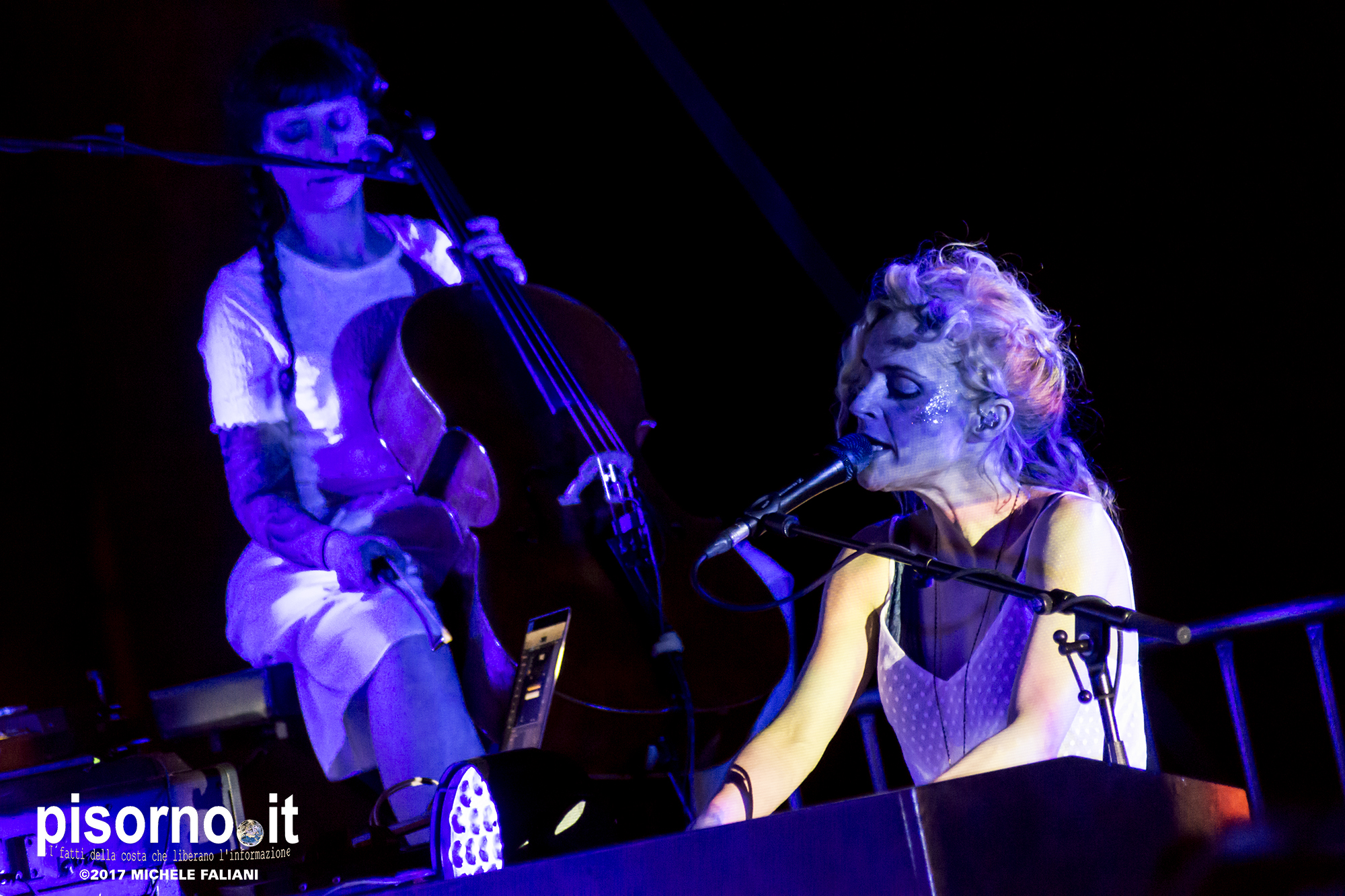 Con queste parole Agnes Obel, cantautrice danese a Ferrara per l’unica data italiana del suo tour, ha ringraziato gli oltre mille spettatori che hanno riempito il cortile del Castello estense. E che fosse davvero contenta di essere su quel palco era palese. Una location meravigliosa, un’acustica d’eccezione e un pubblico che in religioso silenzio seguiva ogni sua canzone, salvo poi esplodere in un’autentica ovazione alla fine di essa. Dall’iniziale “Citizen of glass” fino ai bis con “Riverside” e “On powdered ground” Agnes e le sue tre musiciste ci hanno preso il cuore e l’anima, per restituirceli a fine concerto arricchiti di tanta bellezza.