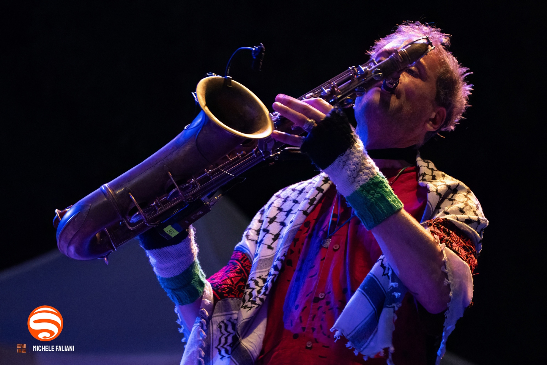 La loro musica – fusione continua di afro e krautrock, jazz e cameristiche, punk e wave – dal vivo è pura materia in movimento. I groove ipnotici, le poliritmie delle percussioni e gli intrecci di fiati e archi si moltiplicavano come onde, spingendo il pubblico a muoversi in un ballo collettivo impossibile da trattenere. Non era solo una serie di canzoni, ma un organismo sonoro che respirava, si espandeva e si ritraeva, capace di passare dall’esuberanza danzante a momenti di sospensione quasi mistica.