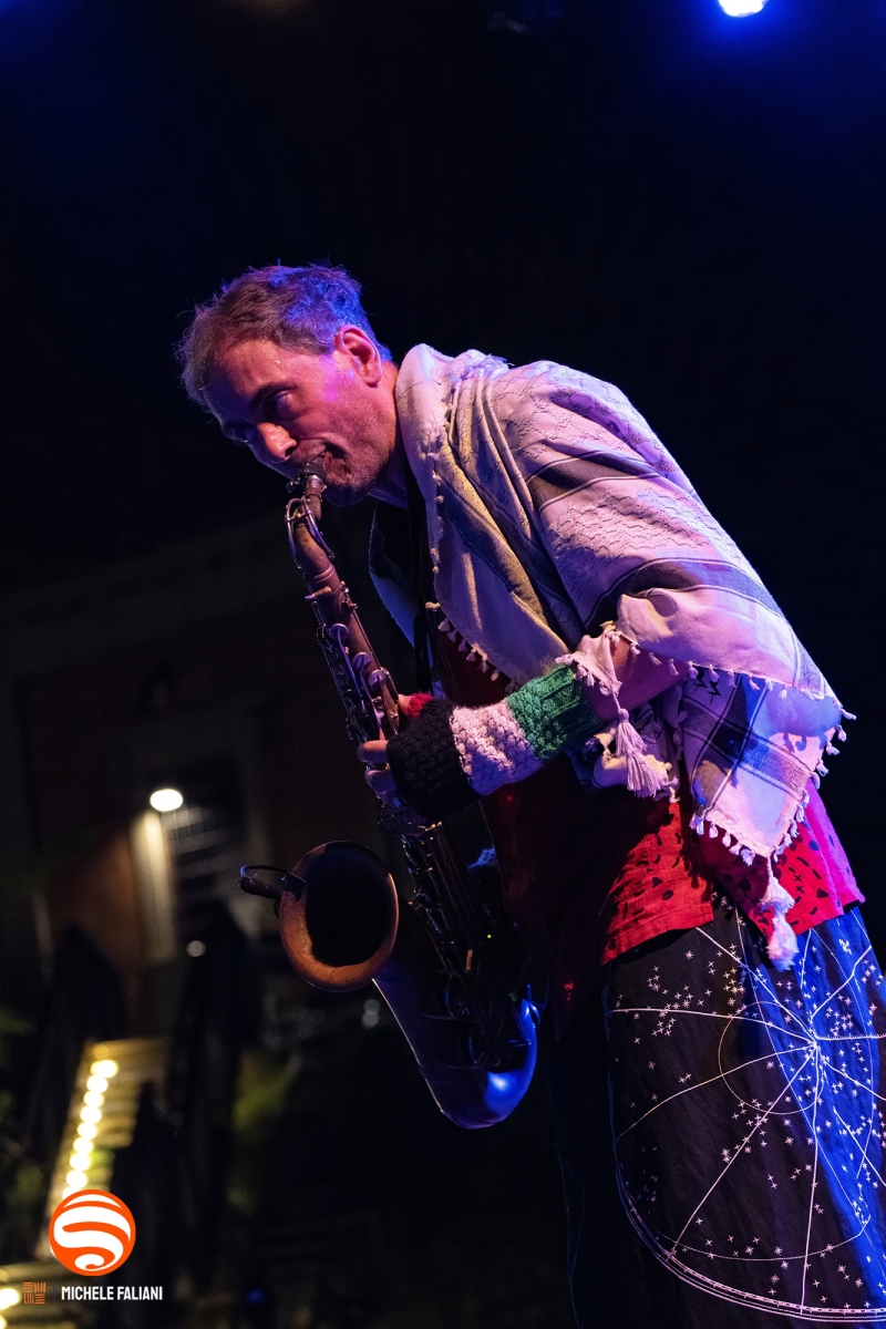 Ogni brano ha preso forma come un gesto rituale: le note si espandevano e si ritraevano, lasciando spazio al silenzio, al respiro condiviso con la platea. Alcuni momenti si accendevano di tribalismi e aperture jazz-rock, altri si raccoglievano in soliloqui fragili, quasi sussurrati. In questa alternanza, l’aspetto sacrale e quello viscerale si incontravano senza mai scontrarsi, creando una tensione magnetica.
