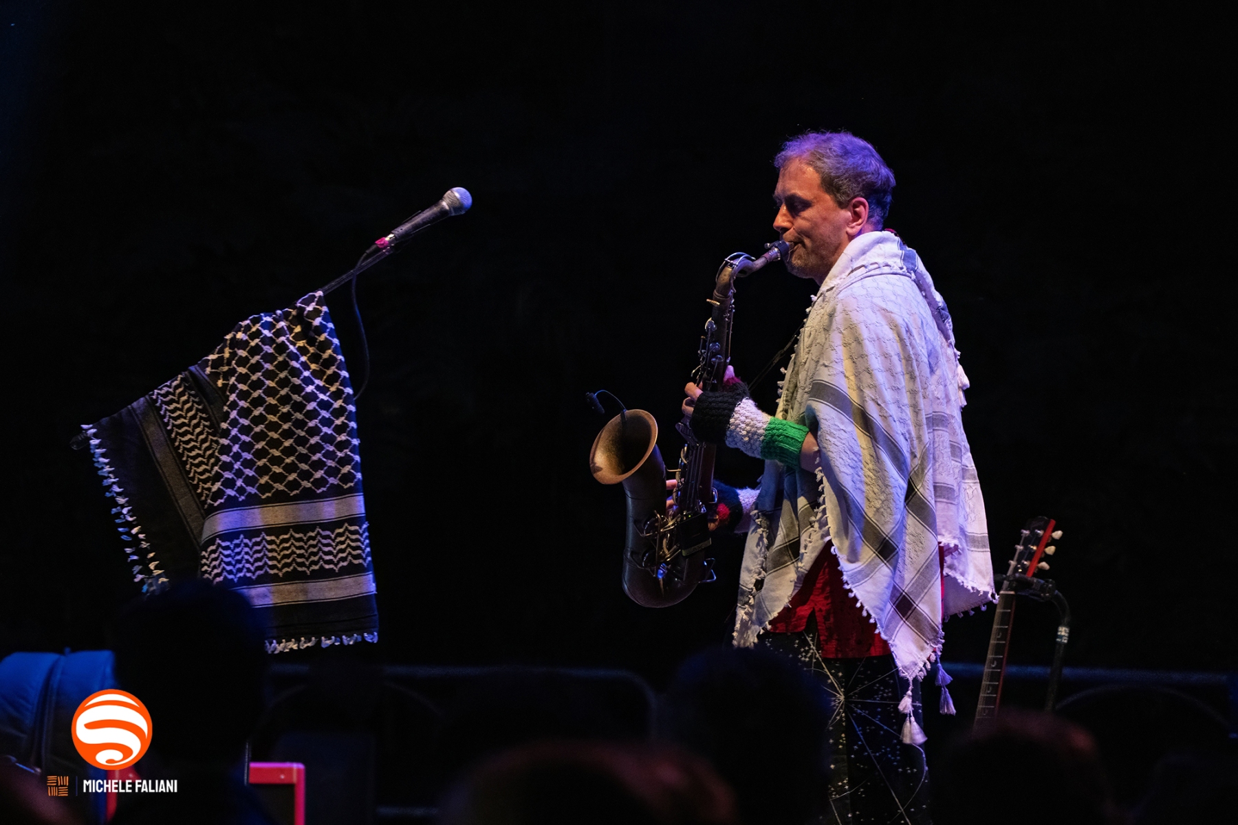 La loro musica – fusione continua di afro e krautrock, jazz e cameristiche, punk e wave – dal vivo è pura materia in movimento. I groove ipnotici, le poliritmie delle percussioni e gli intrecci di fiati e archi si moltiplicavano come onde, spingendo il pubblico a muoversi in un ballo collettivo impossibile da trattenere. Non era solo una serie di canzoni, ma un organismo sonoro che respirava, si espandeva e si ritraeva, capace di passare dall’esuberanza danzante a momenti di sospensione quasi mistica.