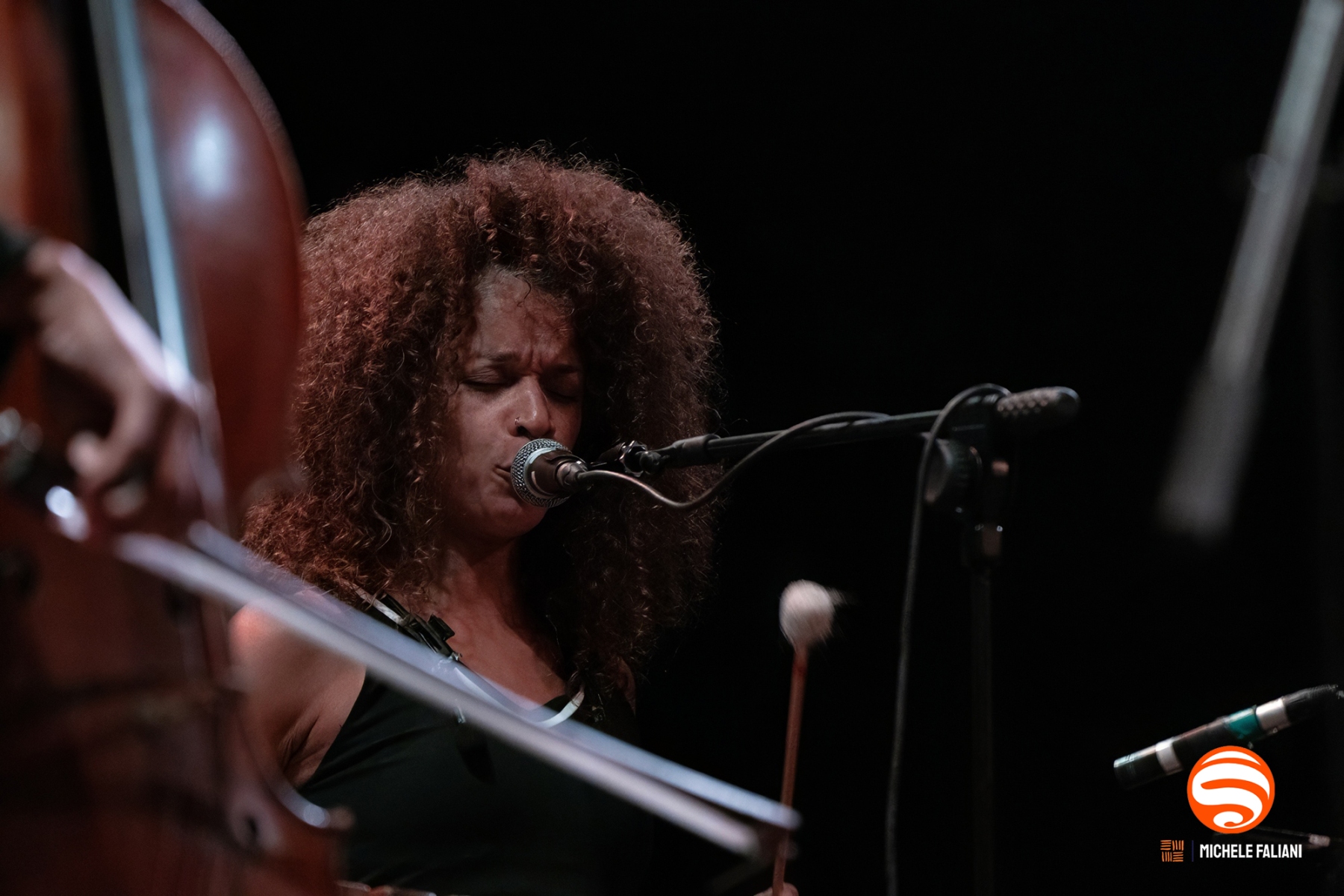 Alabaster DePlume è salito in scena con la sua formazione essenziale – Ruth Goller al basso, Momoko Gill alla batteria, Mikey Kenney al violino – e ha aperto lentamente un varco di suoni e parole. Con il suo sax, la chitarra e una voce ora narrante, ora corale, ha guidato l’ascolto con passo sicuro ma mai arrogante, in un equilibrio costante tra energia muscolare e delicatezza intima.