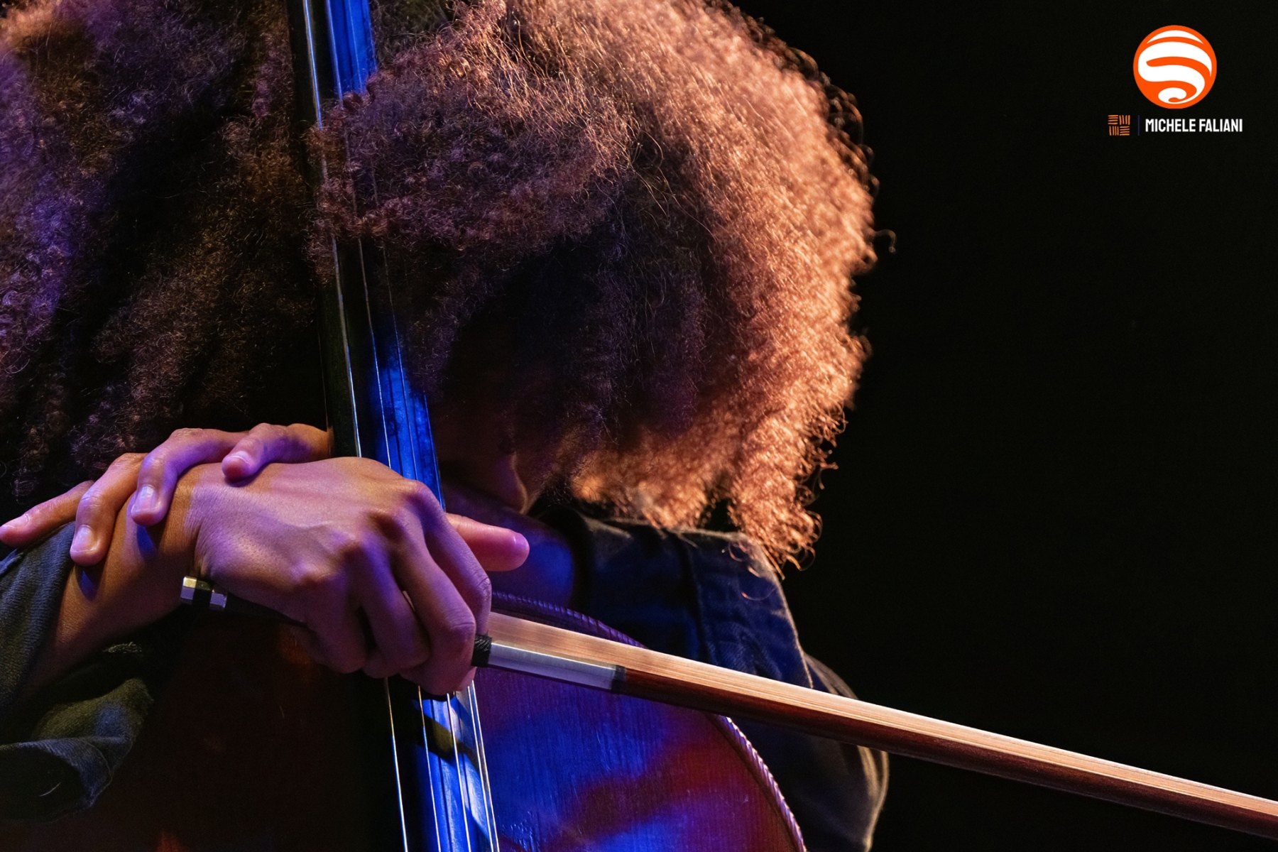 Alabaster DePlume è salito in scena con la sua formazione essenziale – Ruth Goller al basso, Momoko Gill alla batteria, Mikey Kenney al violino – e ha aperto lentamente un varco di suoni e parole. Con il suo sax, la chitarra e una voce ora narrante, ora corale, ha guidato l’ascolto con passo sicuro ma mai arrogante, in un equilibrio costante tra energia muscolare e delicatezza intima.