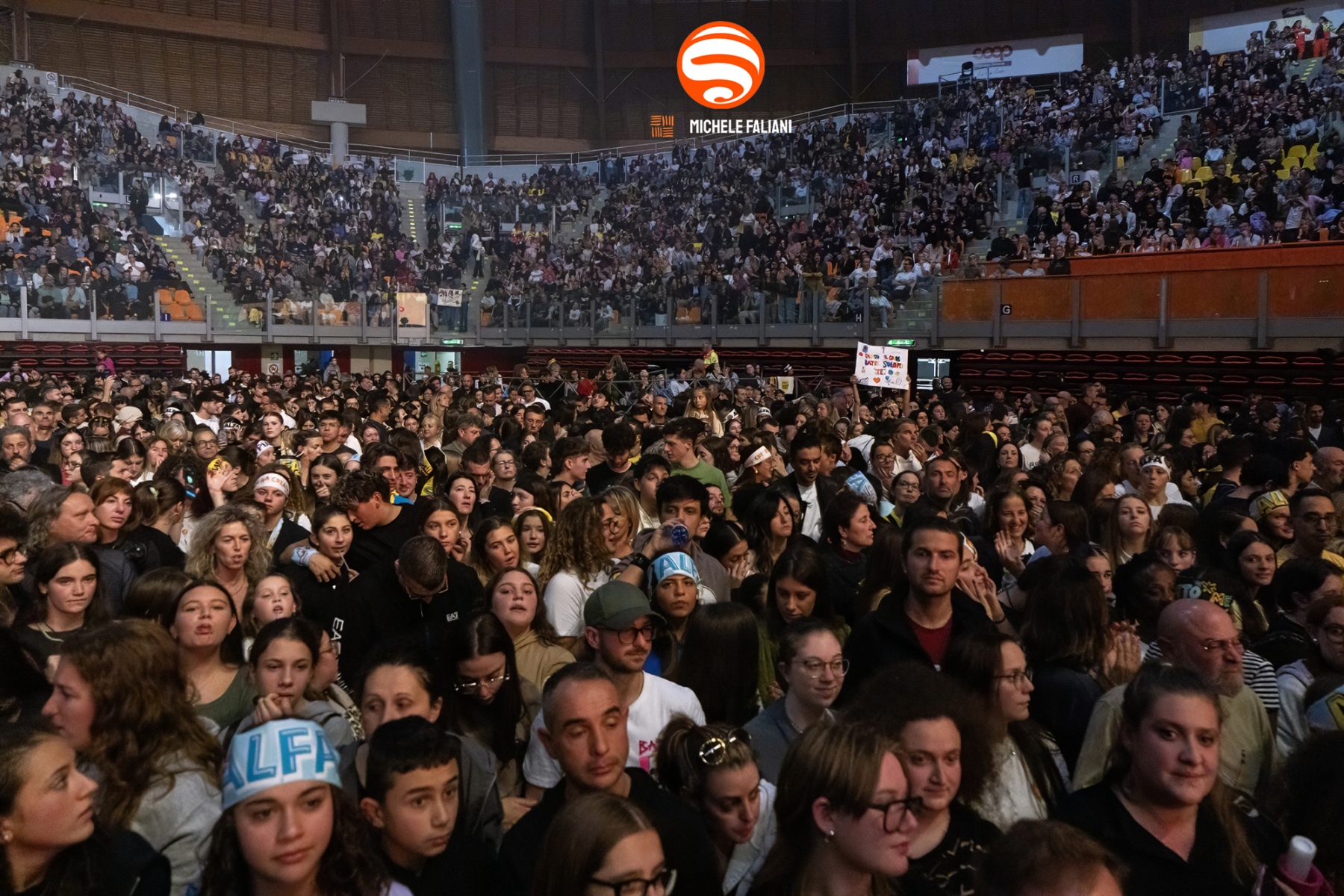 Con «Le cose in comune» emerge un desiderio di maturità nuova, mentre «Bellissimissima» fa esplodere il coro dell’intero palazzetto, confermando dal vivo tutta l’efficacia della sua scelta pop. La romantica «Il filo rosso» fa il resto, portando il pubblico in un abbraccio collettivo.
