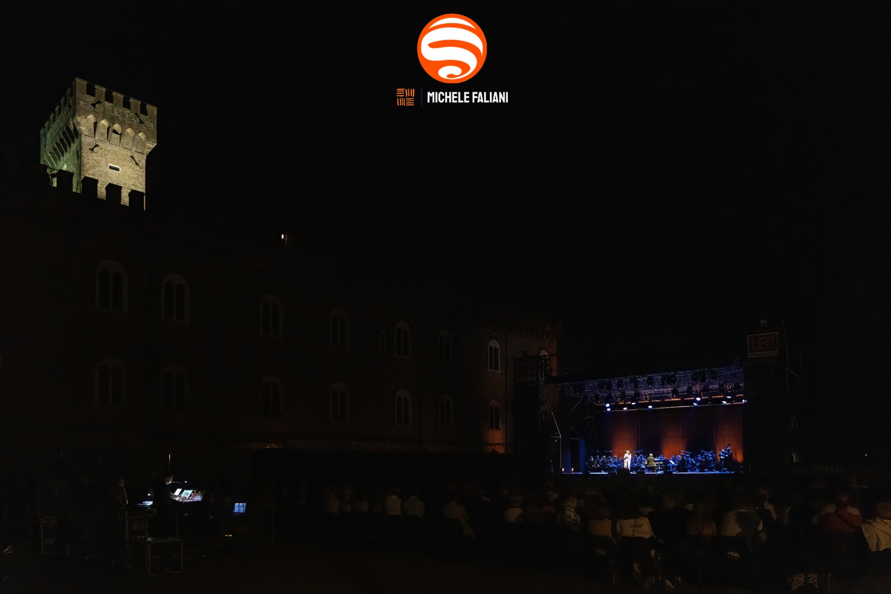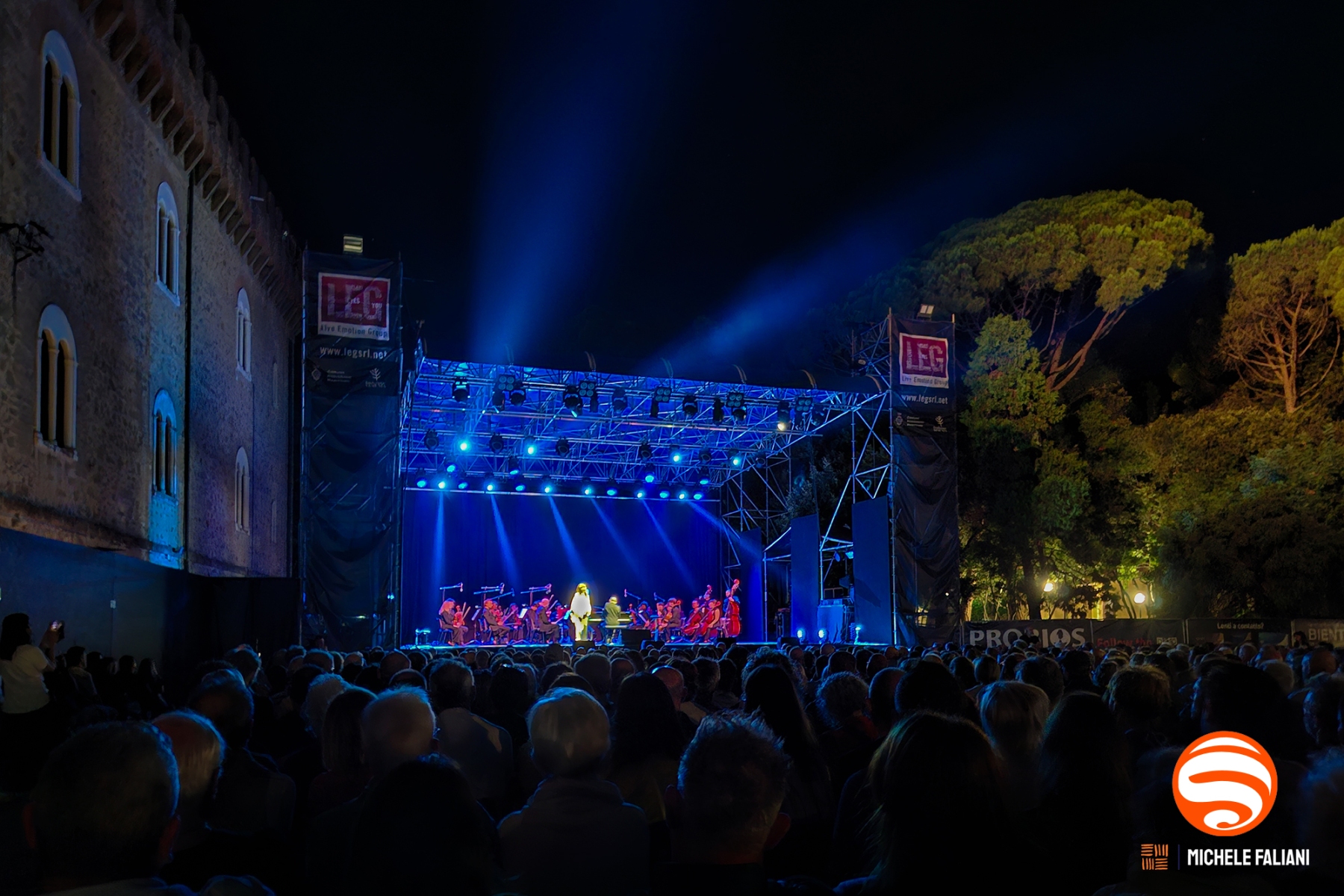 La platea di Castello Pasquini è gremita. Un pubblico maturo, affezionato, ma anche arricchito dalla presenza di giovani, segno che la musica di Alice e Battiato continua a parlare a più generazioni. L’atmosfera è carica di attesa e rispetto.